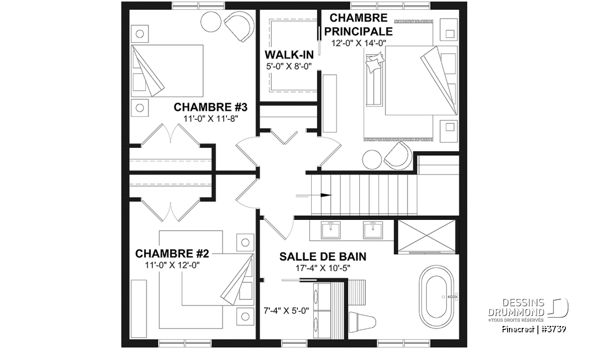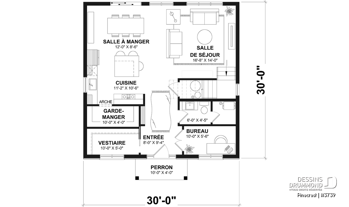 La fondation initiale prévue à ce plan est une dalle flottante. Cependant plusieurs options de fondation sont disponibles, ainsi que notre service de modification si des ajustements sont requis.