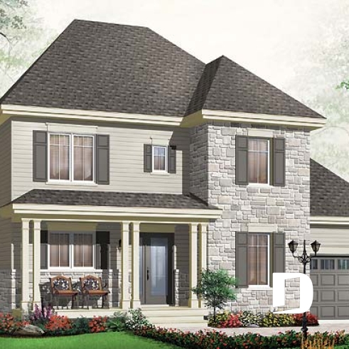 Vue avant - MODÈLE DE BASE - Plan de cottage, chambres secondaires communicantes, cuisine avec grand îlot, sous-sol à aménager - Pivoine