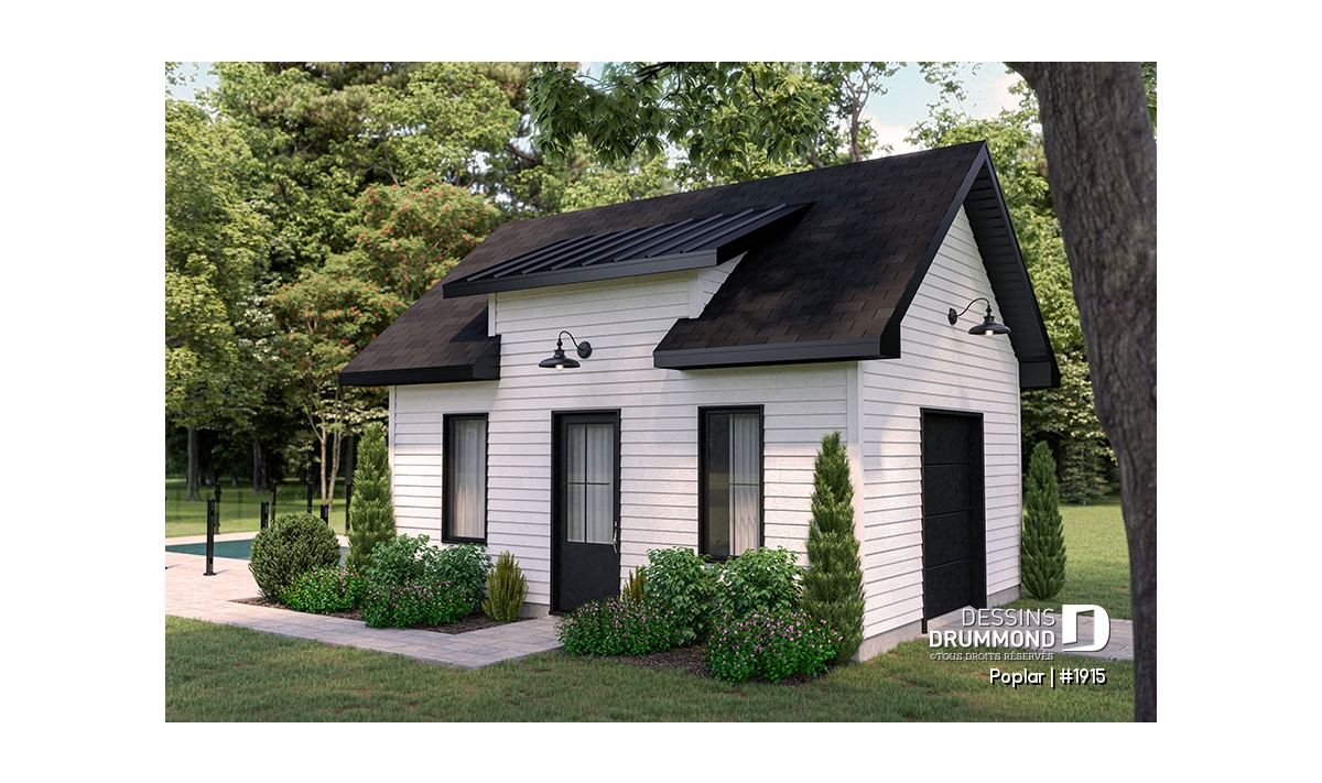 Plan de remise avec porte de garage pour rangement de véhicules hors route