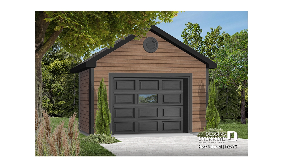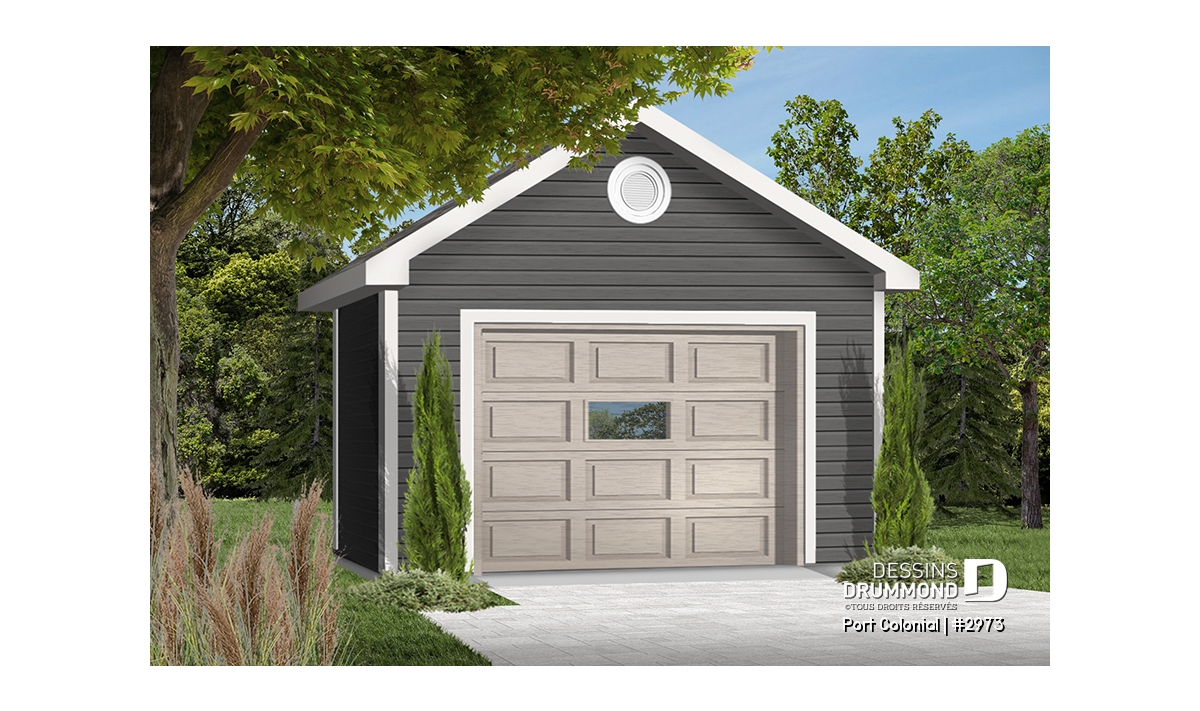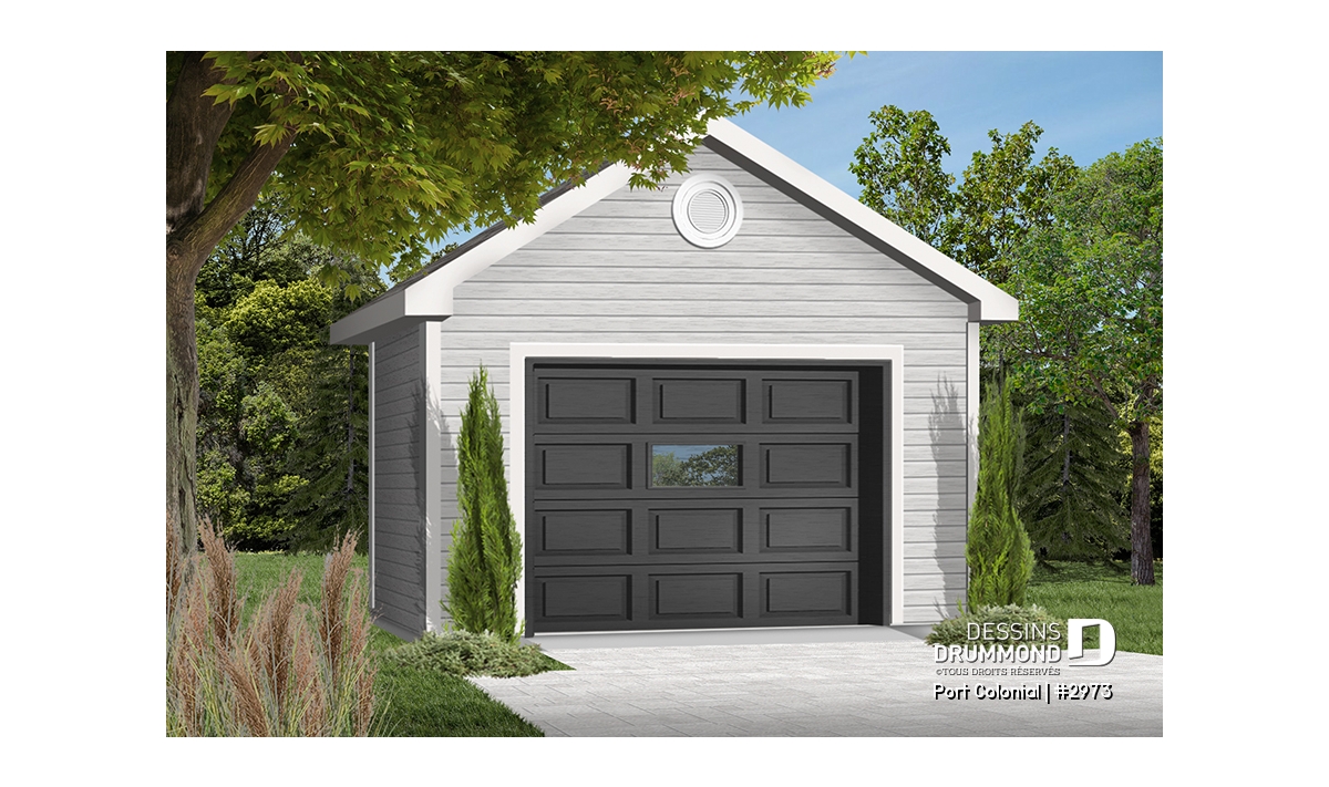 Plan de garage simple détaché de style Américain, pouvant s'harmoniser avec plusieurs styles de maison