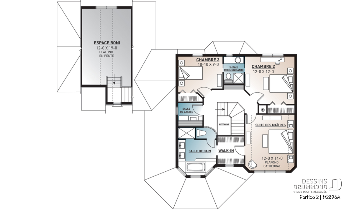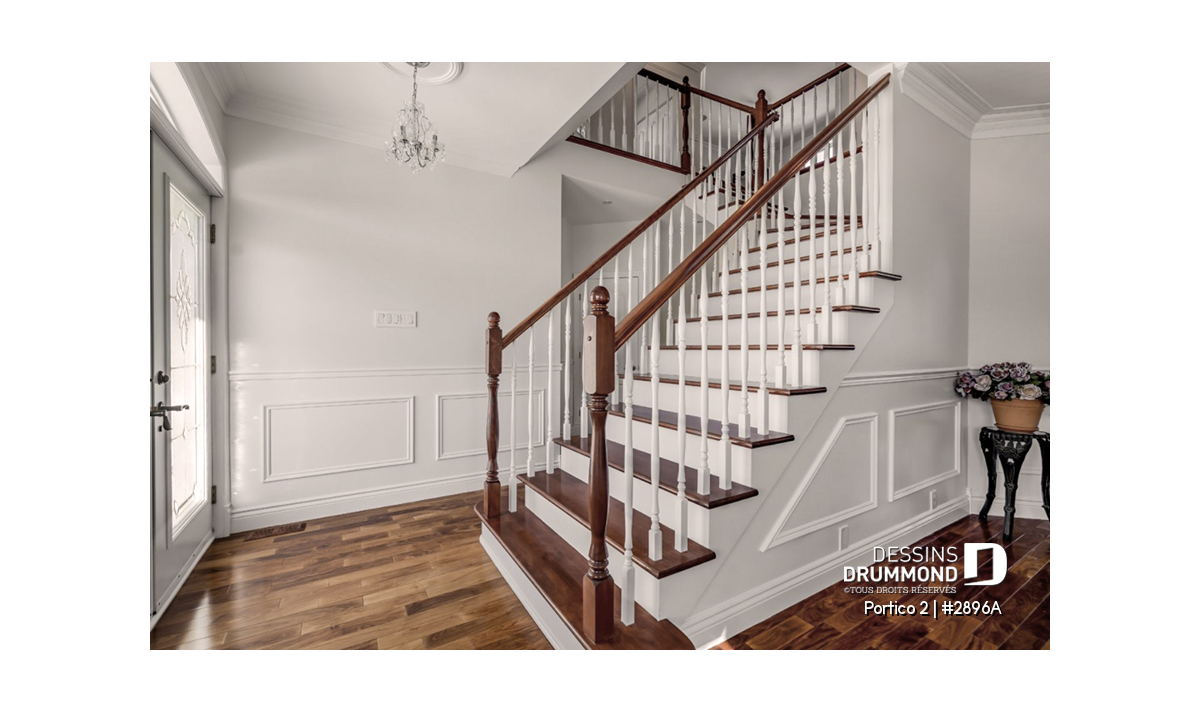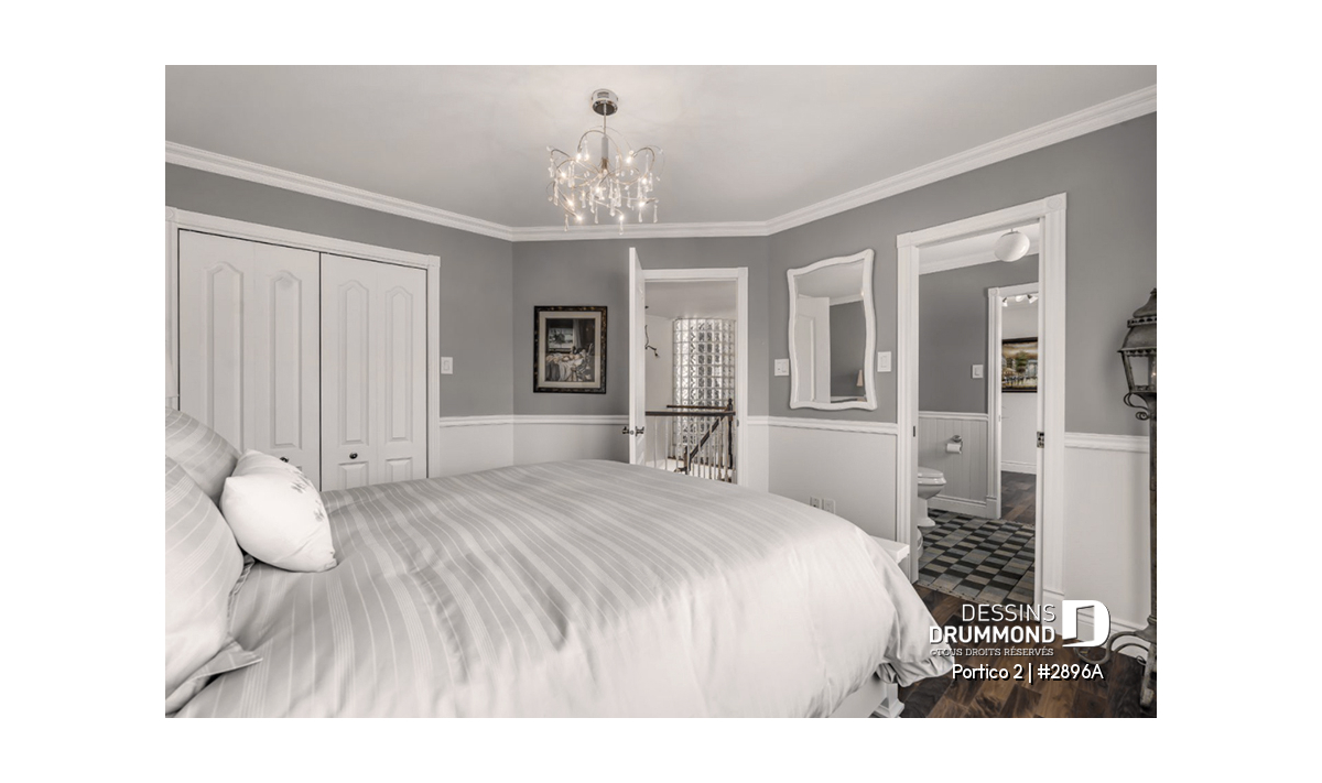 À l’étage principal, la suite des maîtres propose une grande salle de bain privée et un walk-in spacieux. Deux chambres additionnelles se partagent une salle de bain complète, tandis qu’une salle de lavage pratique à l’étage ajoute une touche de confort moderne. **Pour une version proposant une chambre des maîtres au rez-de-chaussée, voir le modèle 2898.