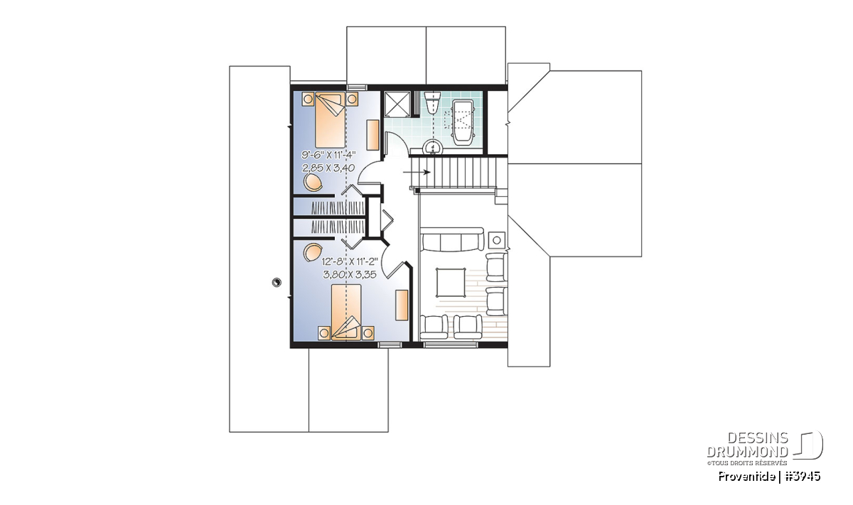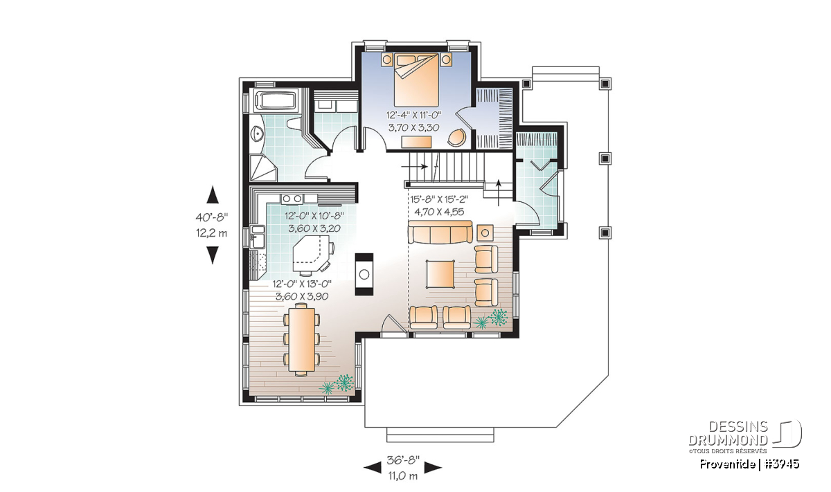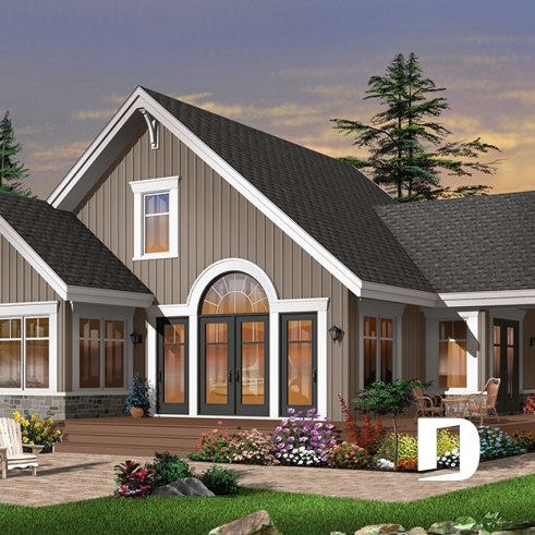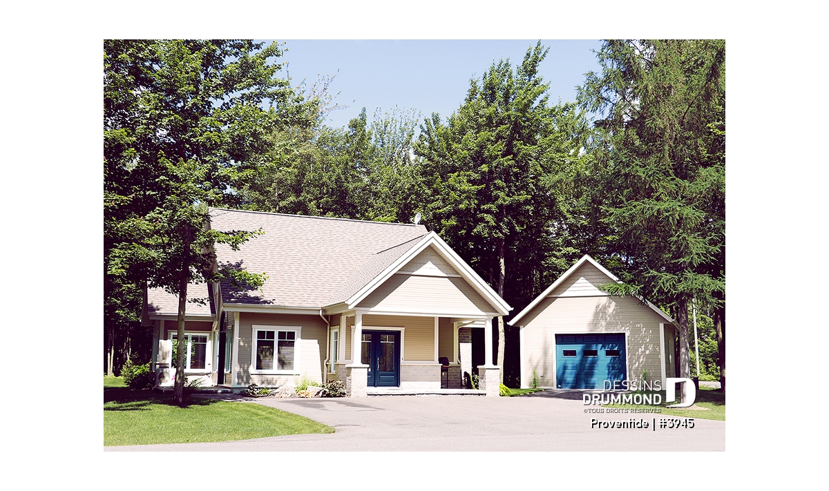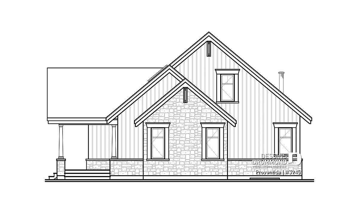 Réalisé dans le même esprit que le plan 2945, ce modèle-ci est entièrement pensé pour être aménagé sur un site avec vue panoramique avant. Avec sa porte de service, ou porte principale latérale, ce plan se veut tout de même véritablement invitant.