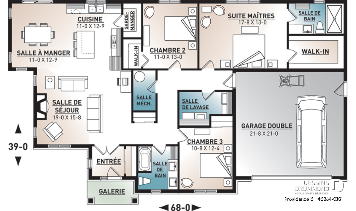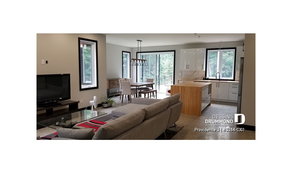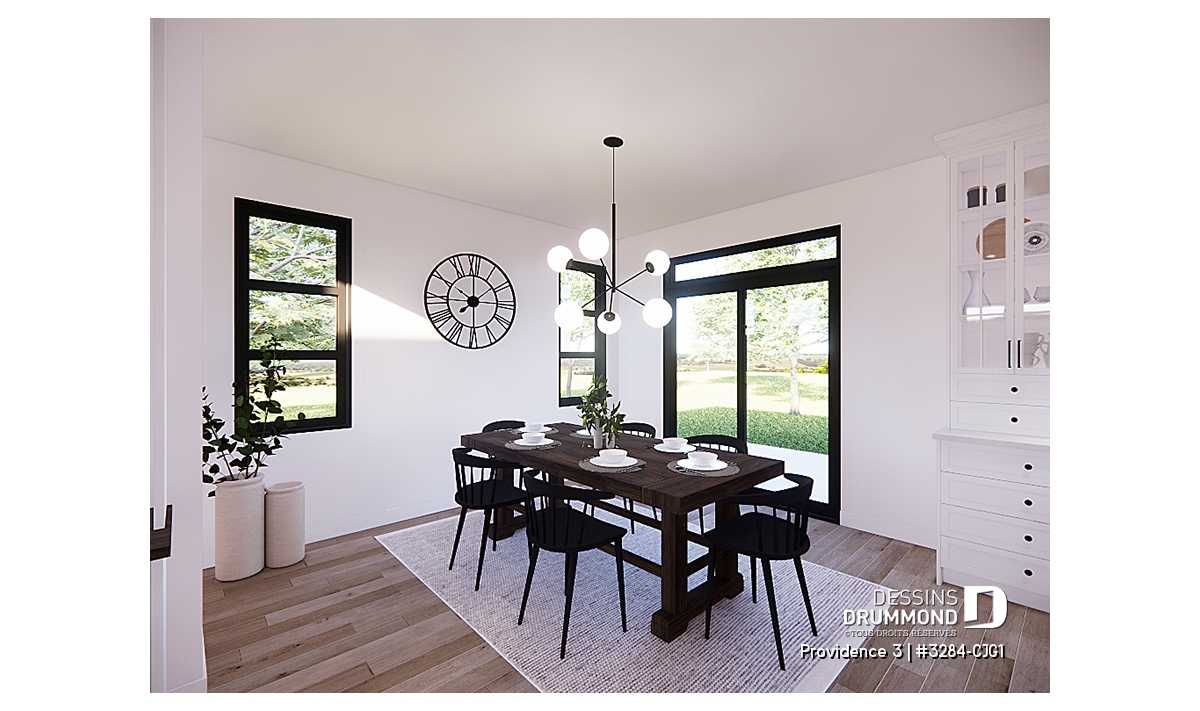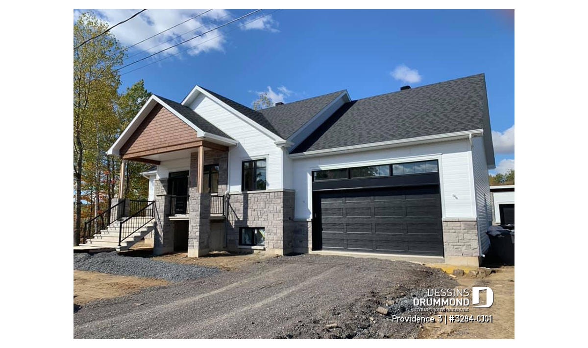 Le garage double avec accès direct à l’intérieur ajoute praticité et sécurité, tout en répondant aux besoins des familles modernes. Prévu sur fondation de type dalle flottante, ce modèle peut aussi être adapté selon vos préférences avec d’autres *types de fondations.