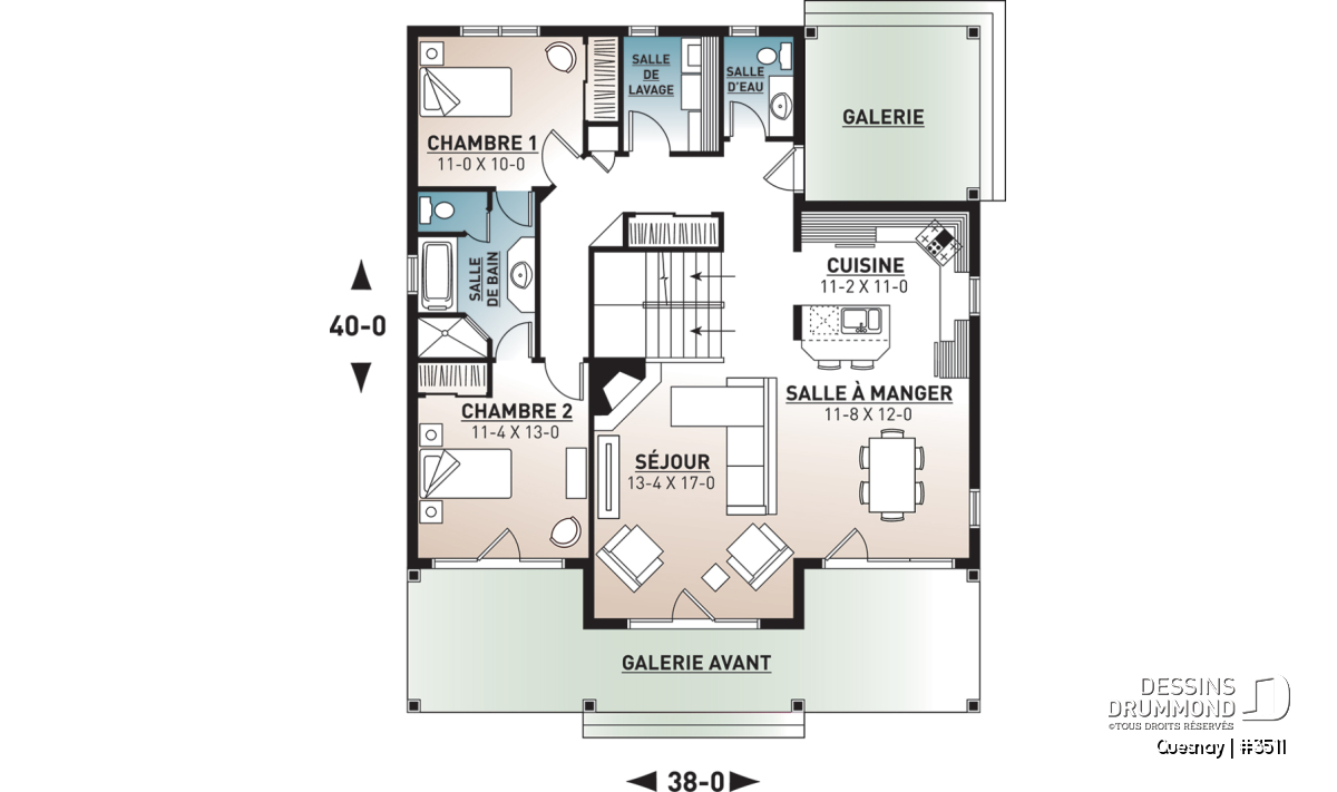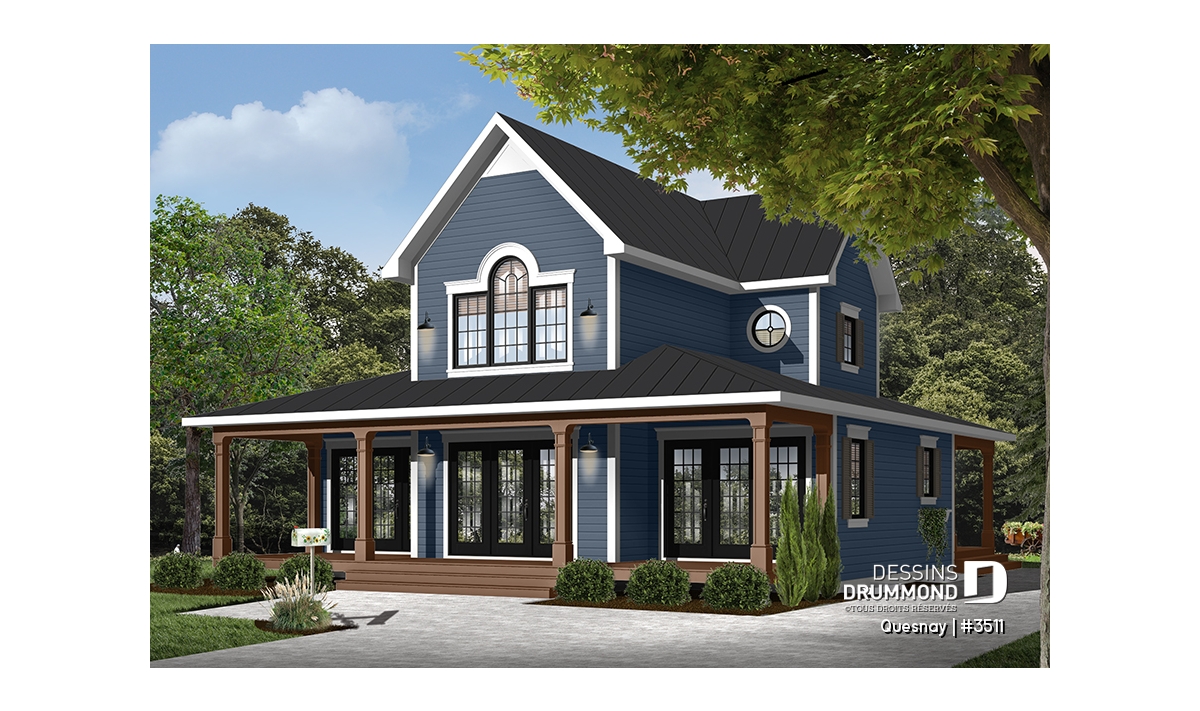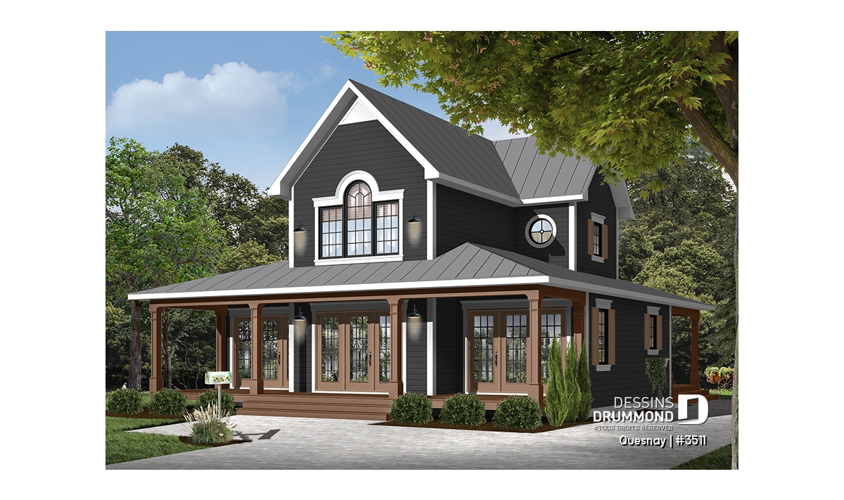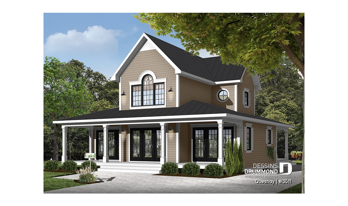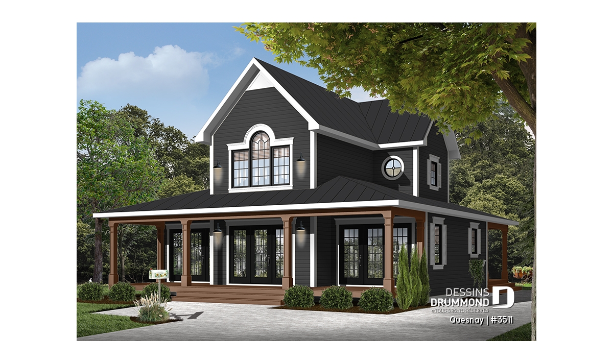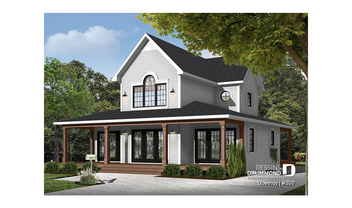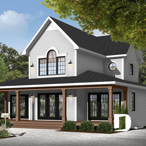 Grande galerie avant couverte et autre galerie couverte à l'arrière.