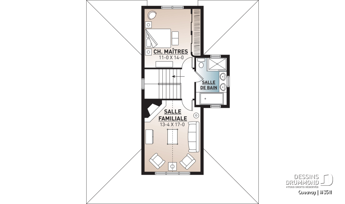 Une 4ème chambre facile à aménager à l'étage, à la place de la salle familiale à l'étage.