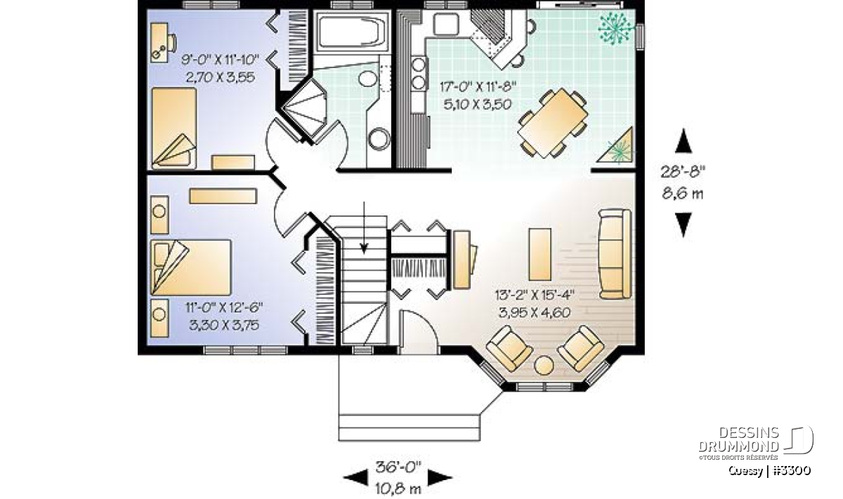 Largeur 36'0" Profondeur 28'8"