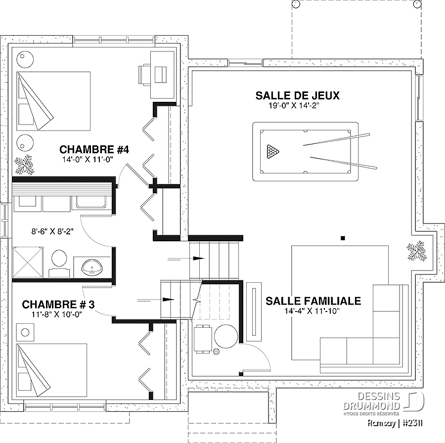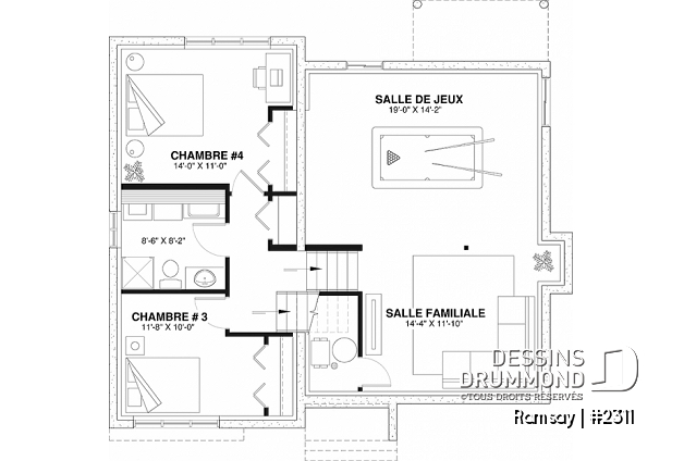 Tous les plans de Dessins Drummond ne peuvent être modifiés que par Dessins Drummond et ses agences reconnues; si vous faites modifier votre plan par une autre entreprise ou personne que Dessins Drummond, assurez-vous que cette entreprise ou personne détient une licence pour la modification de ce plan sinon, vous êtes passible de poursuite judiciaire au même titre que l'entreprise ou la personne avec qui vous avez fait affaires pour la modification ou la reproduction du plan.