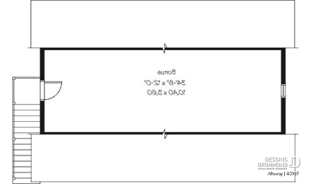 L'espace boni aménageable est généralement prévu au-dessus du garage et il est accessible de la maison. Comme il est prévu aménageable, il pourra devenir un bureau, un espace buanderie, une salle de bain, un coin bibliothèque ou même une chambre additionnelle pour laquelle les propriétaires devront s'assurer d'avoir une fenêtre conforme aux normes en vigueur. De plus, la finition de cette espace boni est toujours INCLUSE dans nos estimation du coût de construction, sauf si avis contraire dans les sections « Description et/ou Éléments descriptifs » de la page du plan.
