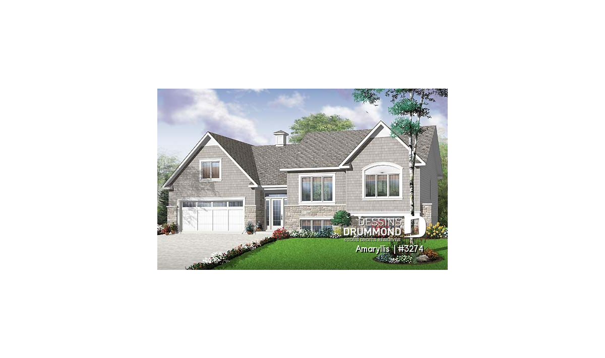 À l’instar du modèle 3151, celui-ci propose également un aménagement intérieur sur deux planchers avec occupation maximale du demi-sous-sol visant à combler les besoins d’une famille à la recherche d’une maison de 4 chambres et sans que celle-ci soit nécessairement une maison à étage.