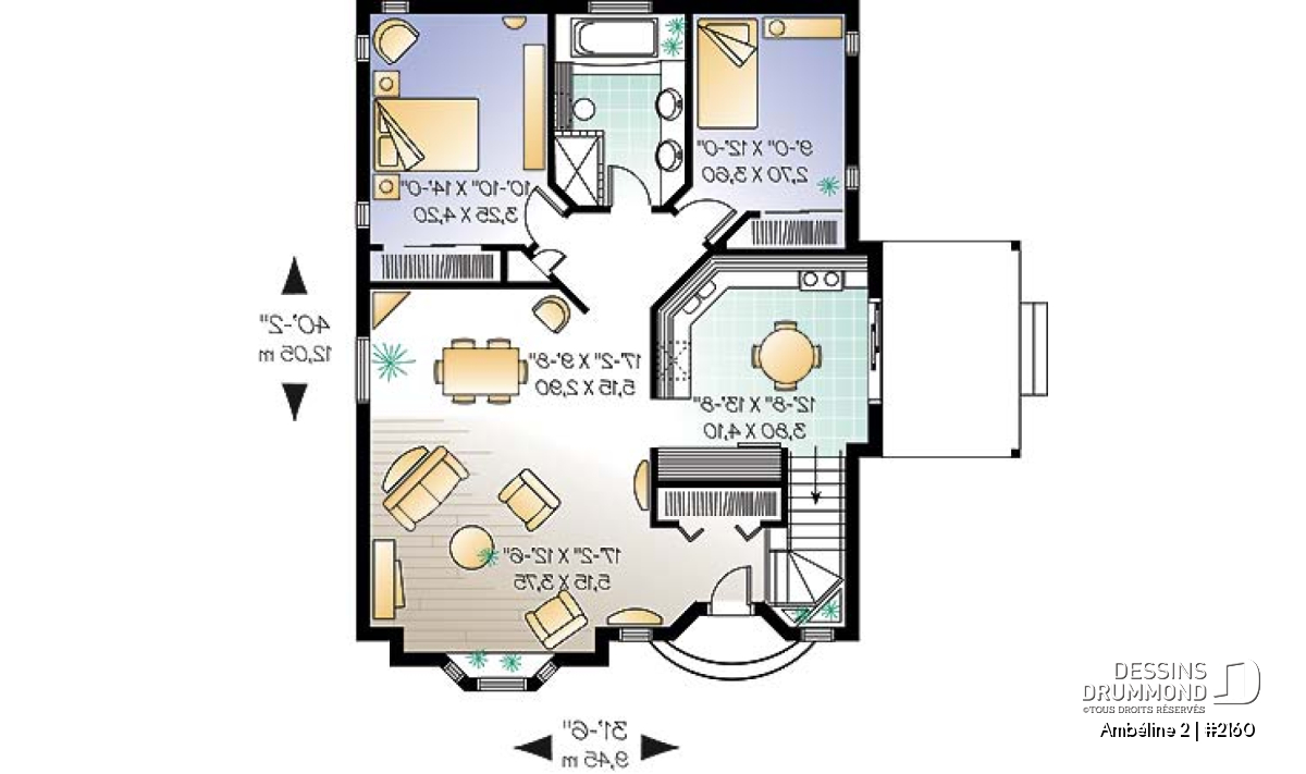 | Largeur | 31'6" | Profondeur | 40'2" |