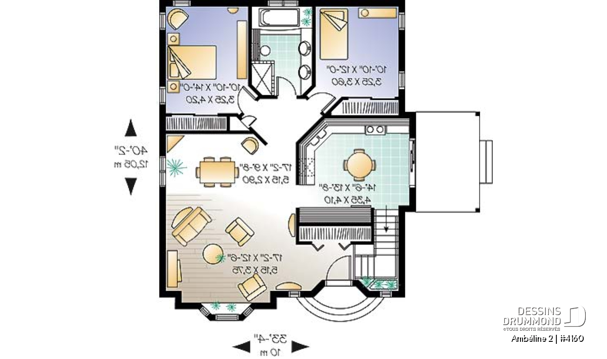 | Largeur | 33'4" | Profondeur | 40'2" |