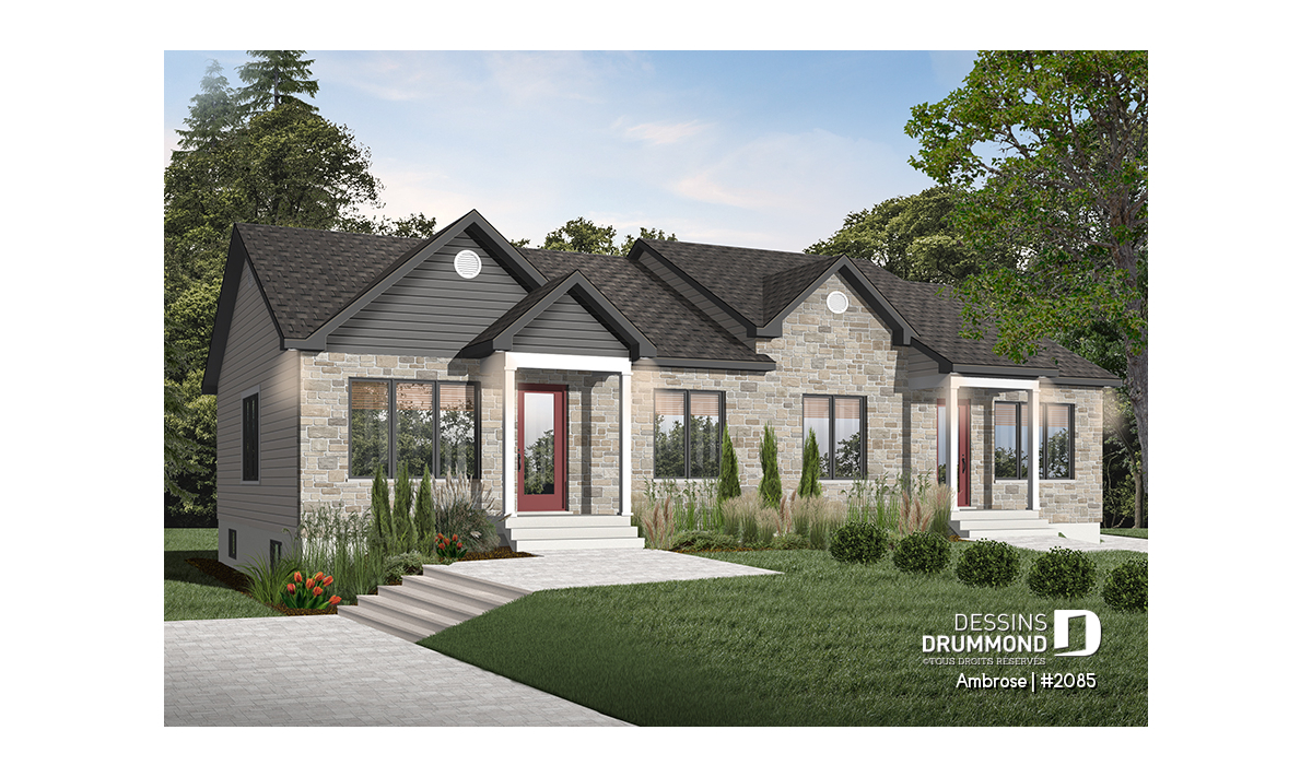 Vue avant - MODÈLE DE BASE - Plan de semi-détaché, 2 chambres, cuisine tout en lumière et grand sous-sol - Ambrose