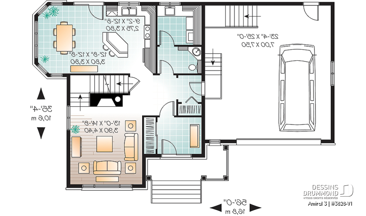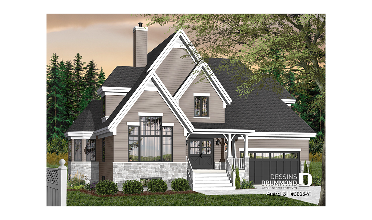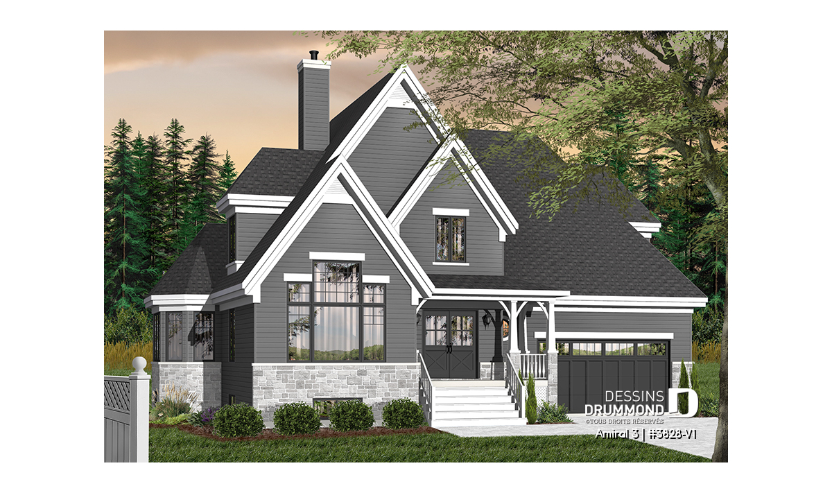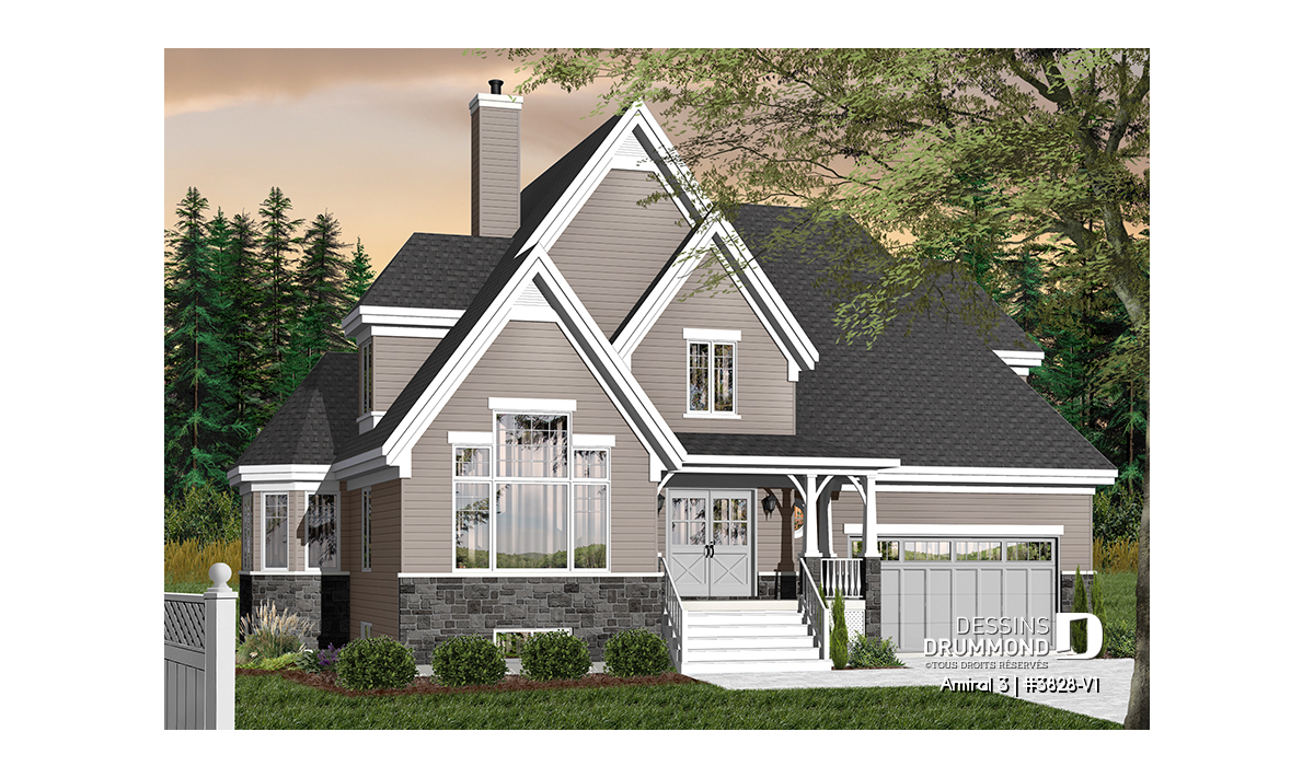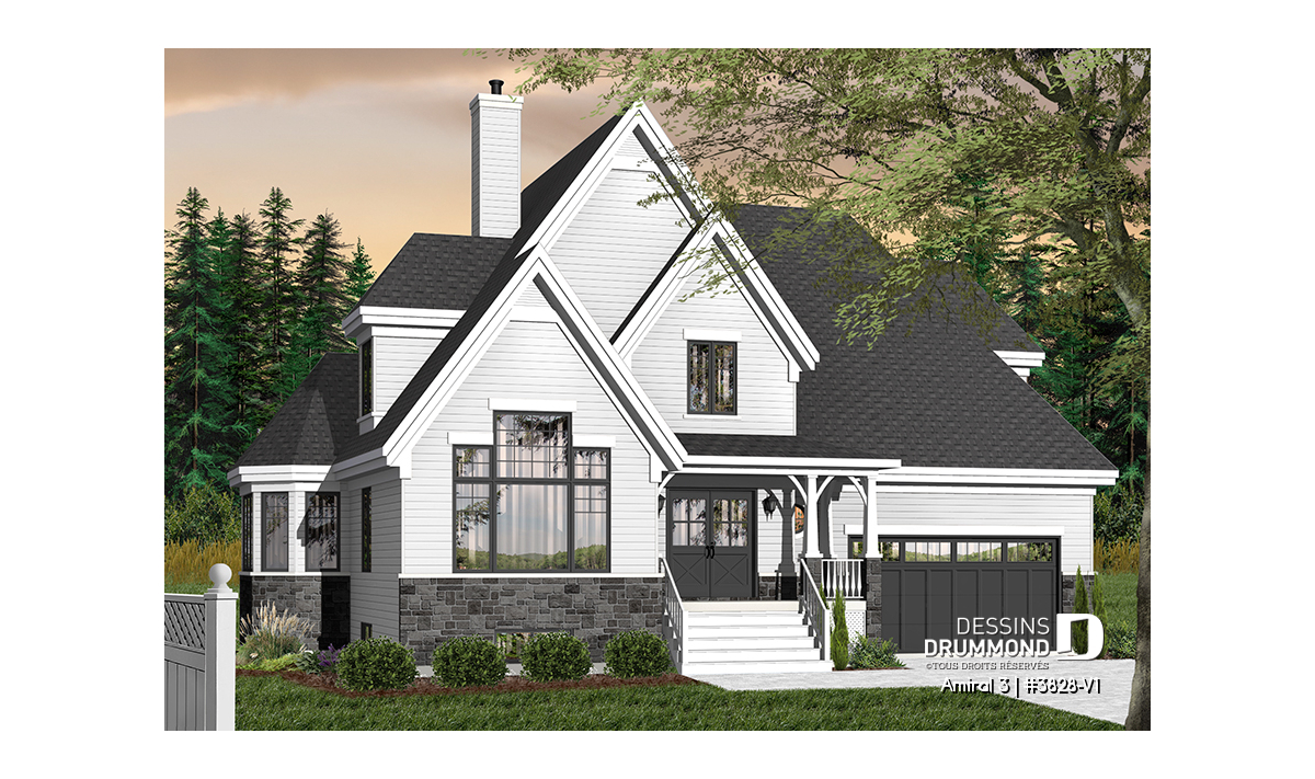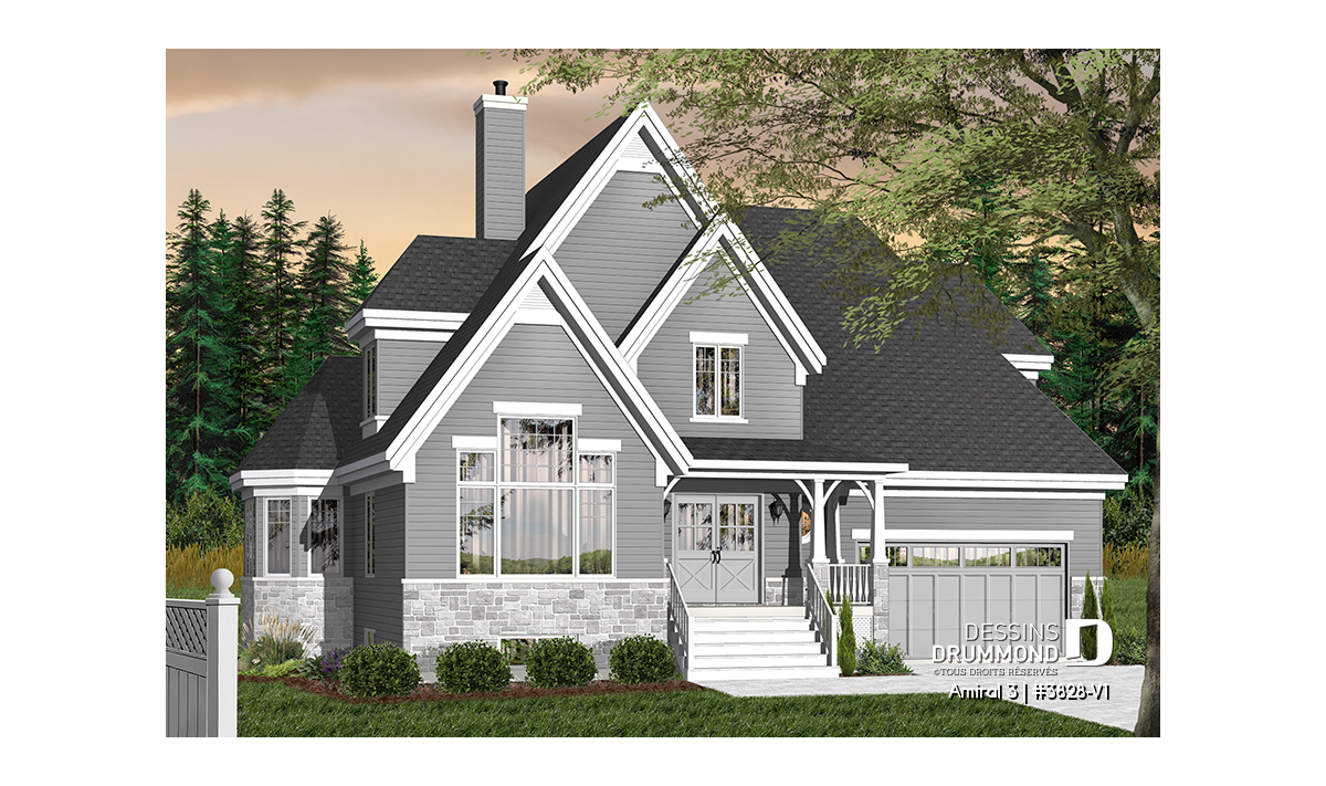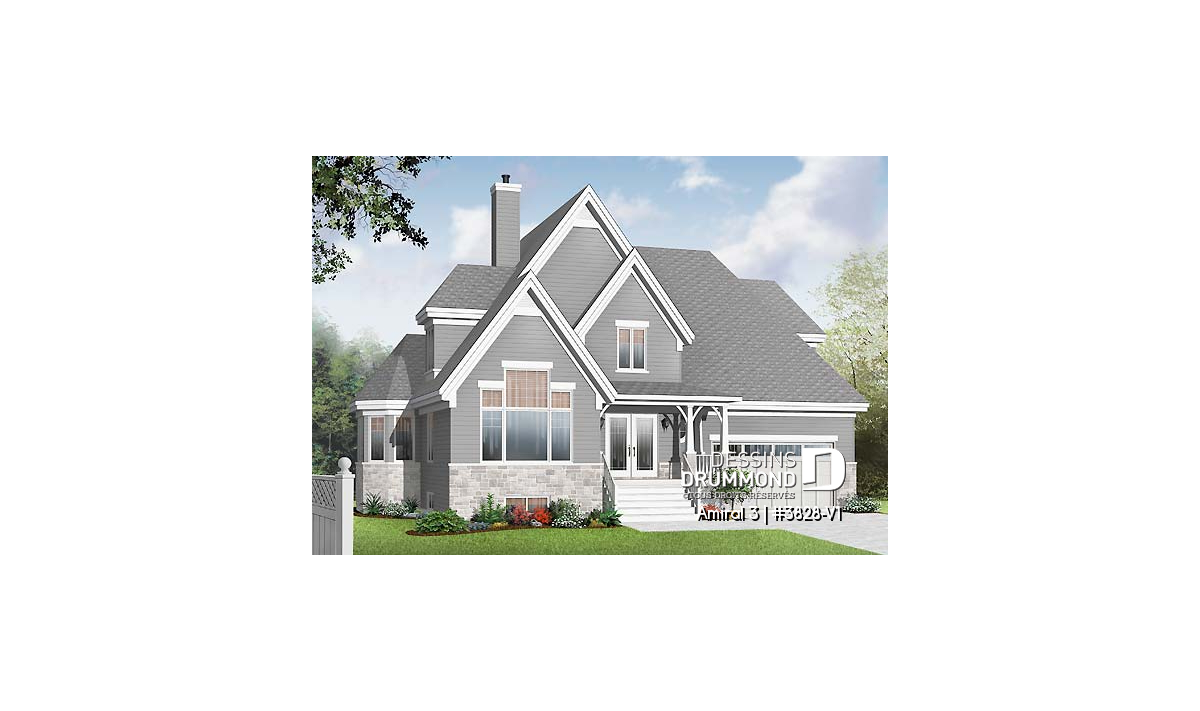 Conçu initialement dans une pensée européenne, surtout en ce qui a trait à son extérieur, le modèle 3828 dont origine ce 3828-V1 a, dès son arrivée sur le marché, suscité l’intérêt de plusieurs dont certains nous ont fait part qu’il serait bien que ce plan propose un garage double et d’autres, pourquoi ne pas remplacer l’enduit acrylique par du déclin ? En bien, voilà que la maison prend des airs à l’américaine et offre maintenant, en guise de cerise sur le sundae, quatre chambres à l’étage.