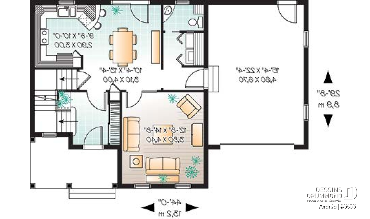 Largeur 44'0" Profondeur 29'8"