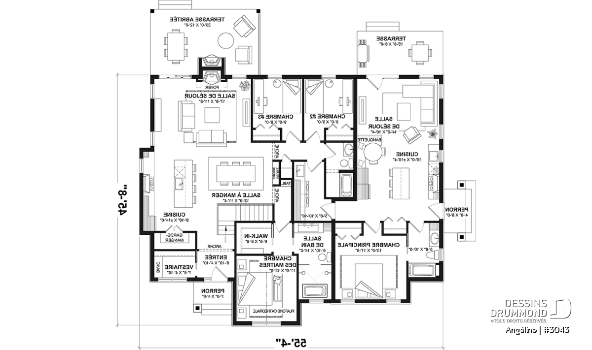 Largeur 55'4" Profondeur 45'8"