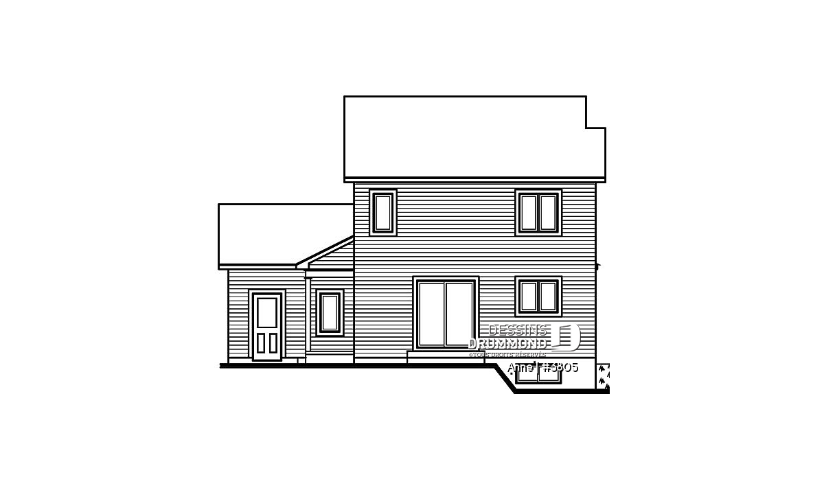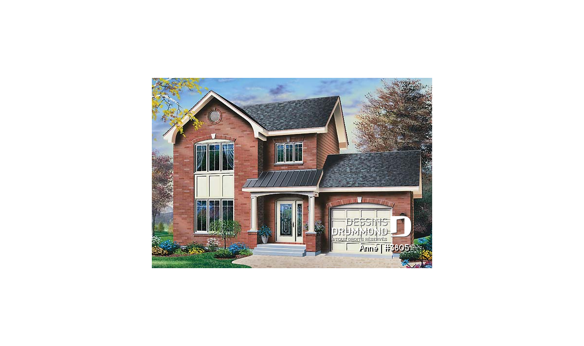 Vue avant - MODÈLE DE BASE - Maison d'inspiration anglaise, 3 chambres, buanderie au r-d-c, suite des maîtres, garage - Anne
