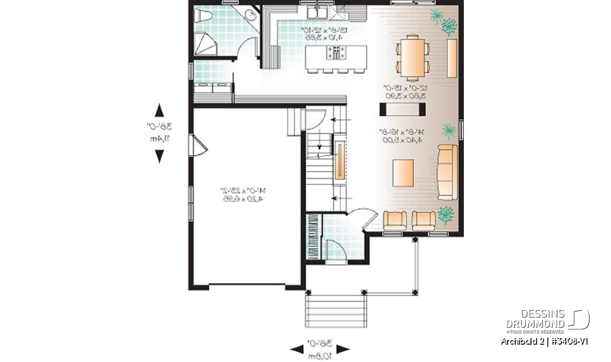 Réalisé à partir du très populaire plan 3408, ce modèle version propose un agrandissement global de 270 pi2 répartis ainsi : 167 pi2 de plus pour la partie habitable, 66 pi2 de plus pour le garage et 36 pi2 de plus pour l’espace boni. Cela permet l’obtention de pièces intérieures de plus grandes dimensions, d’un garage de 14 pi. de largeur intérieure et comme tant demandé de la part des nouveaux propriétaires.