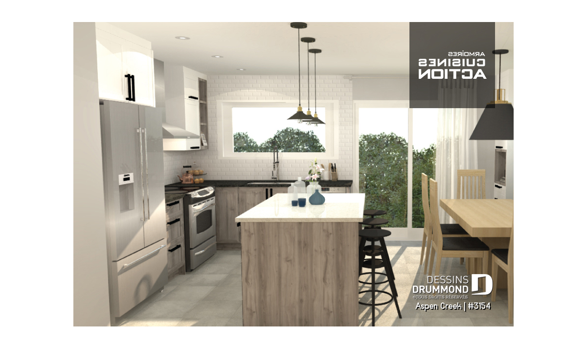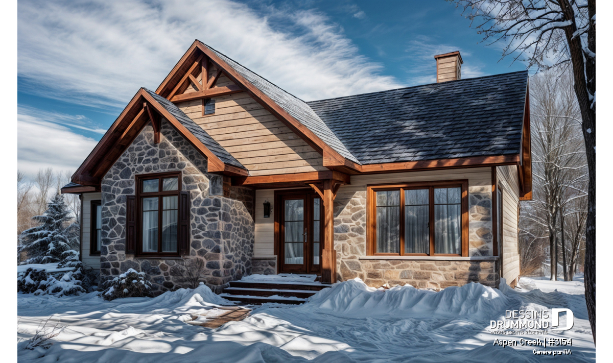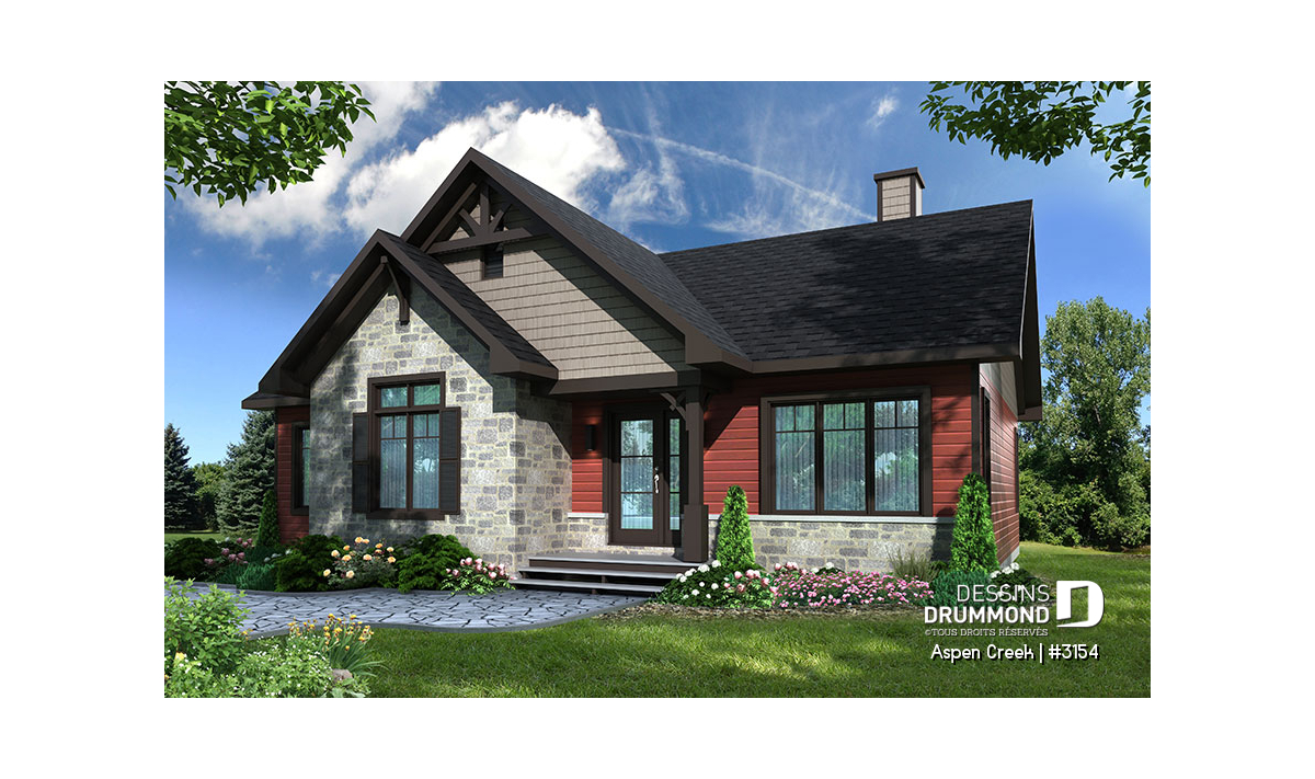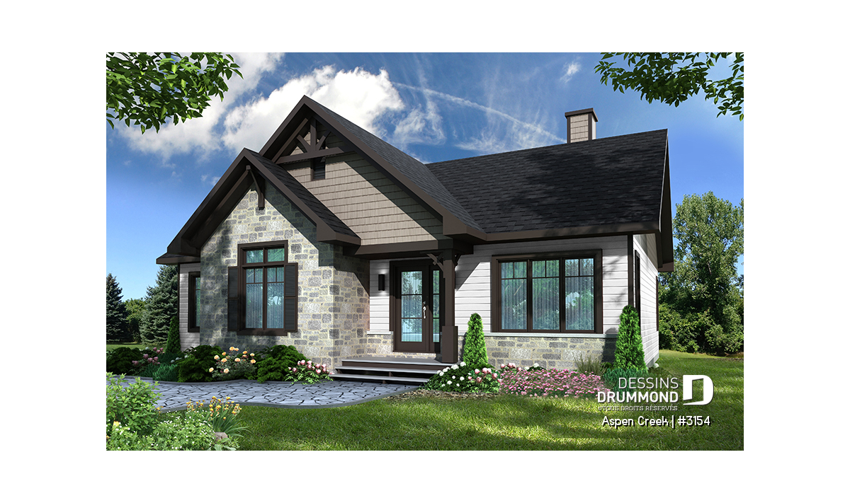 Nouveau modèle de maison de style transitionnel, aux charmes et aux allures à la fois rustique et champêtre, mais comportant aussi des éléments empruntés au style maison contemporaine tels les fenêtres aux moulures foncées par exemple. Ce nouveau plan de maison moderne rustique de Dessins Drummond, nommé Aspen Creek, ou plan # 3154, a été conçu par l’agence Dessins Drummond de la Beauce. Il y a beaucoup de talents dans le réseau des 22 agences Dessins Drummond au Québec!