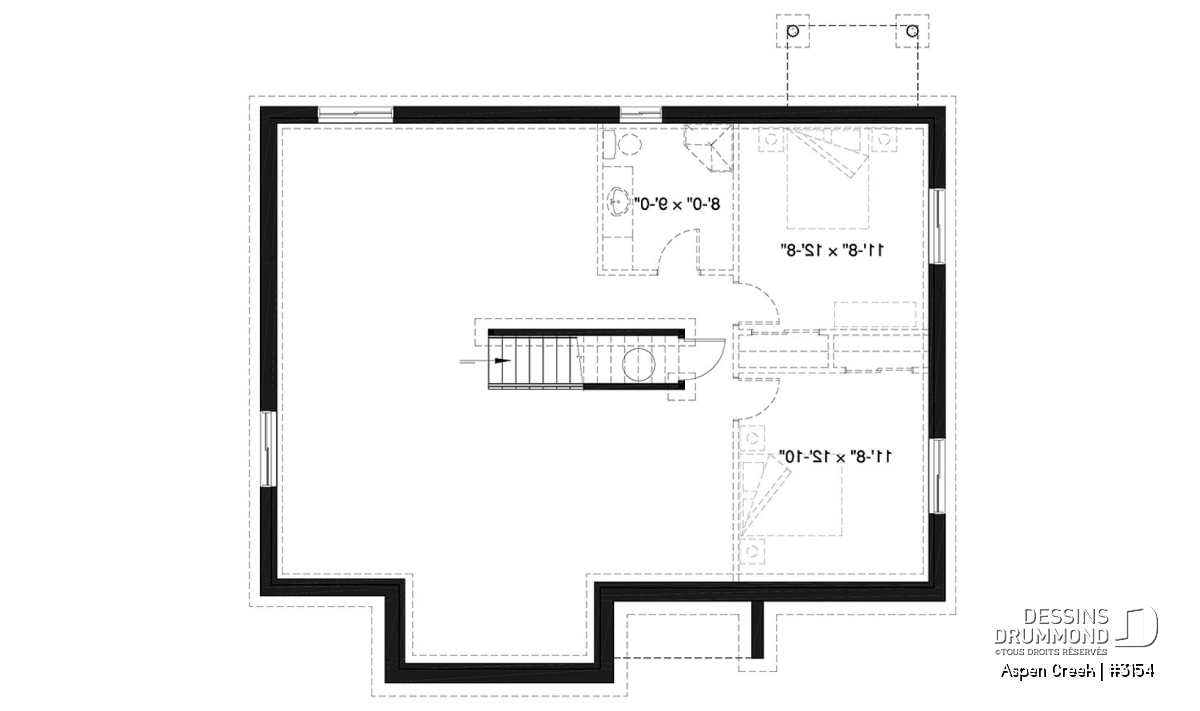 Proposition d'aménagement de 2 chambres et salle de douche au sous-sol, incluse au plan que vous recevrez.