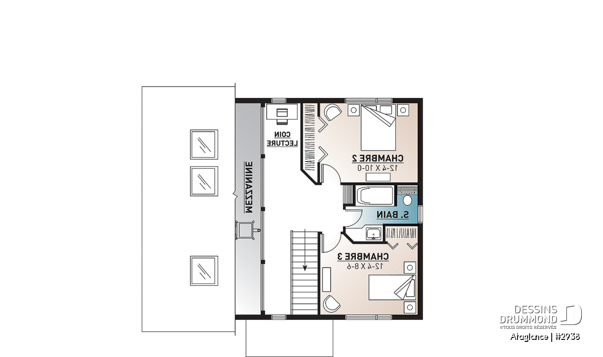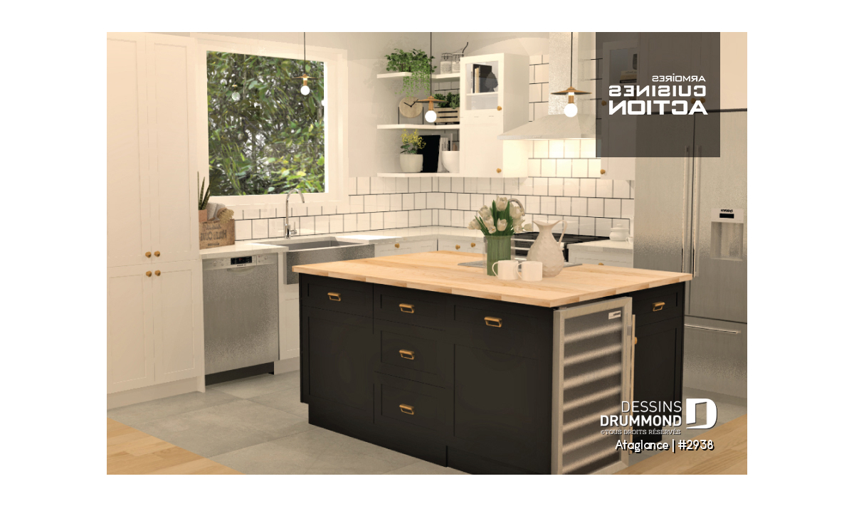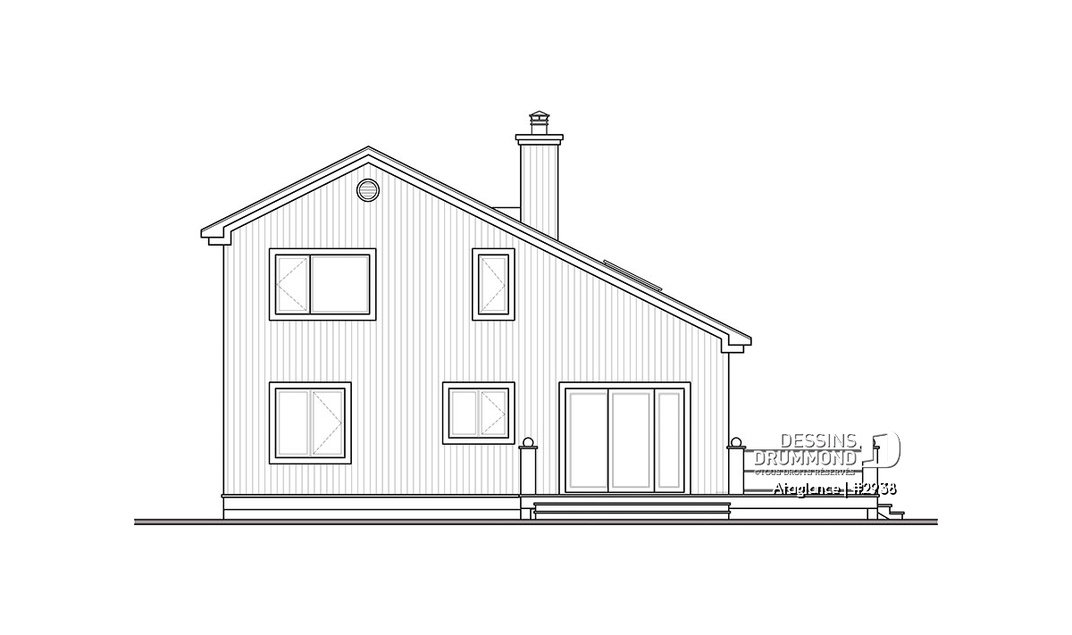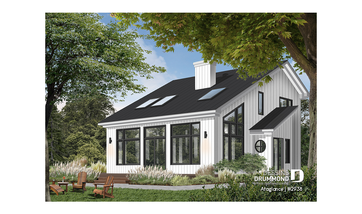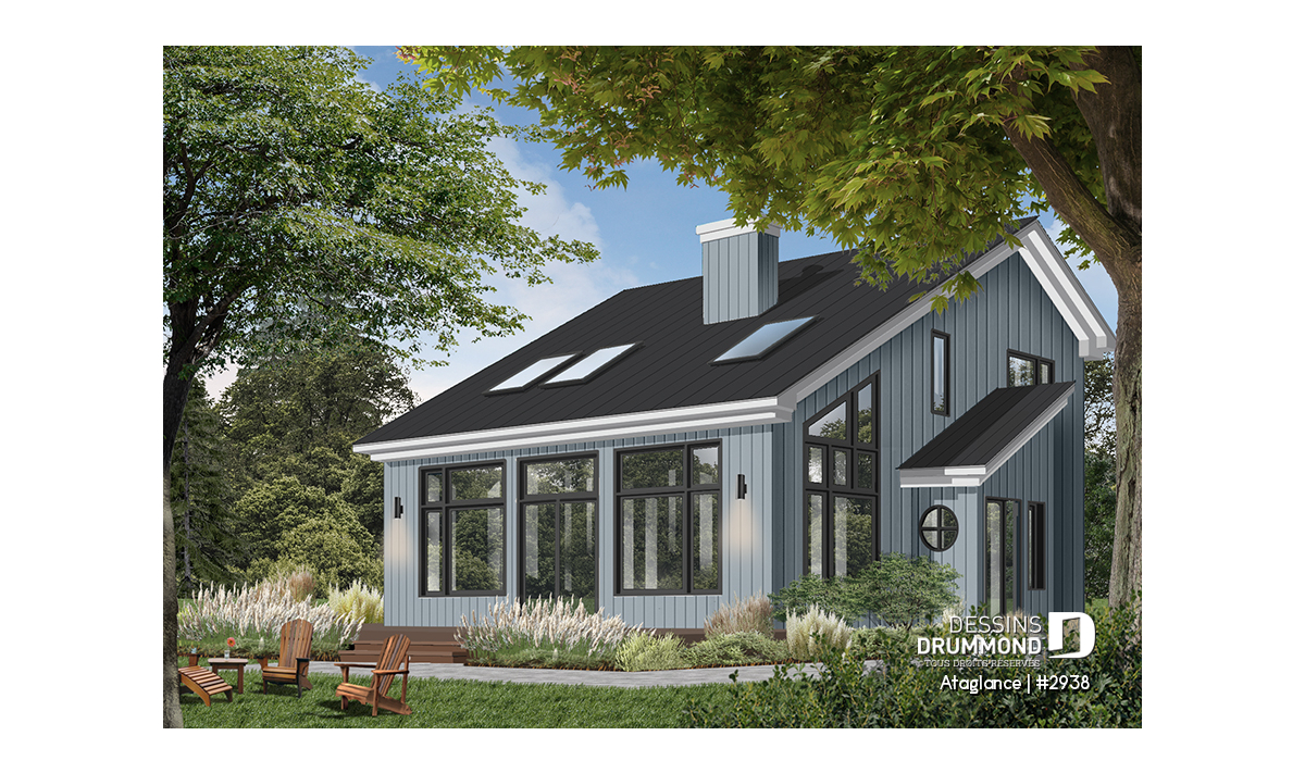 Plan de maison de style chalet, baigné de lumière naturelle.