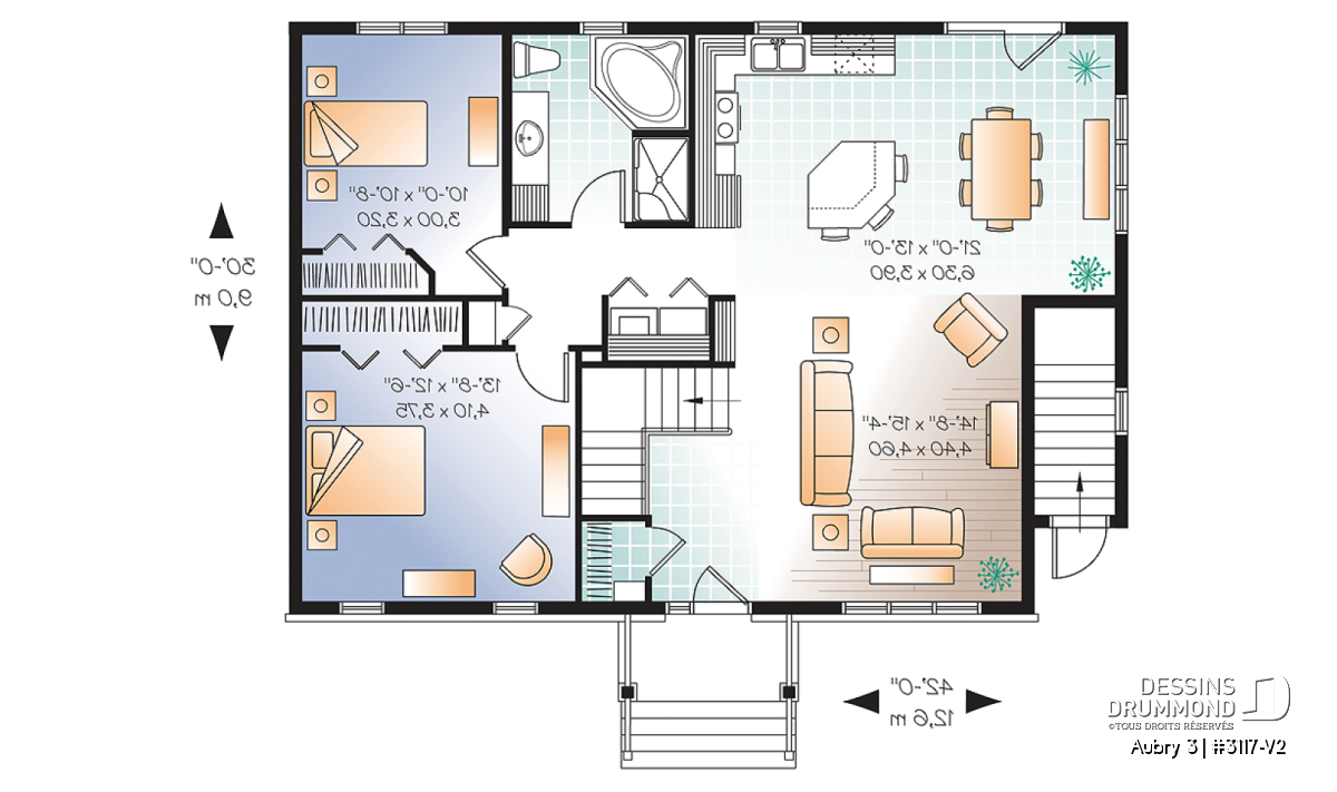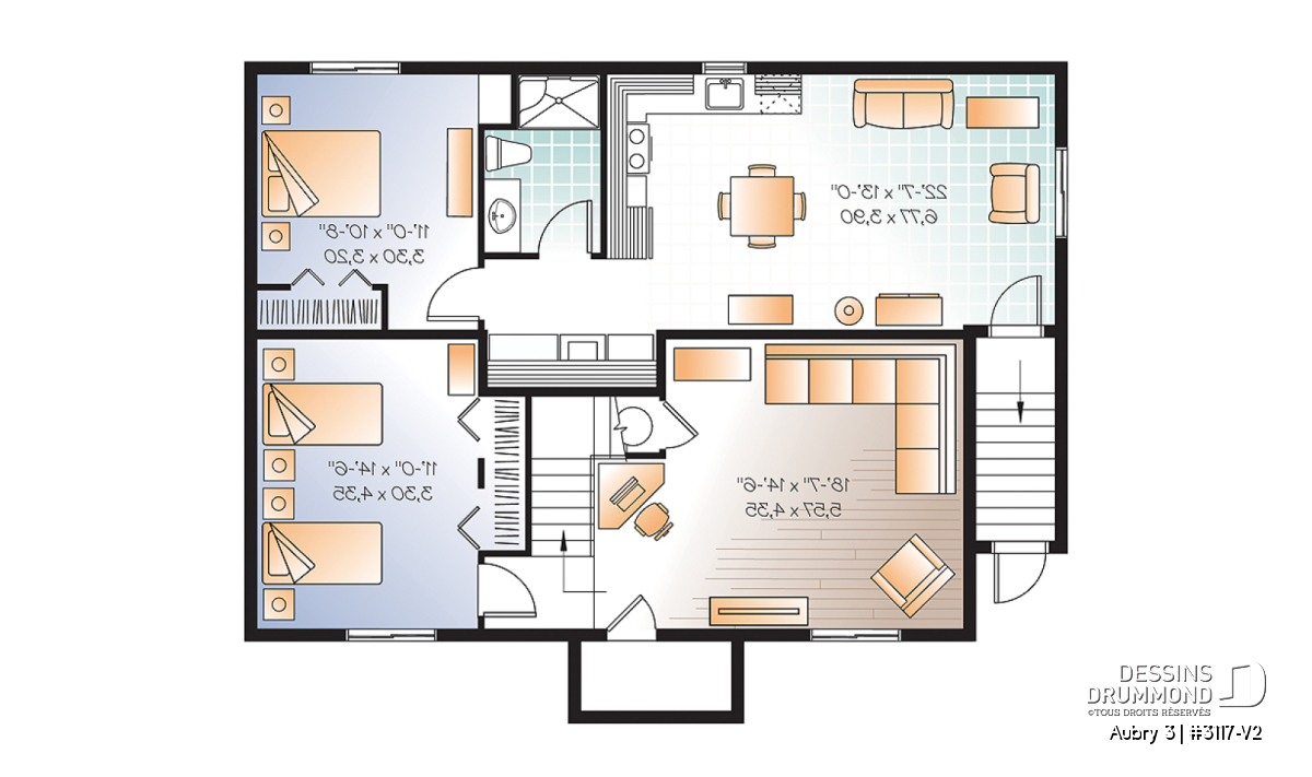 Il ne fait pas de doutes que l’on peut parler d’un plan populaire lorsque l’on parle du plan 3117. Celui-ci, tout comme le plan similaire 3107 qui propose 3 chambres, fait maintenant partie des plans favoris des québécois. Afin de faciliter davantage l’accessibilité à ce modèle déjà populaire, Dessins Drummond propose ce plan version 3117-V2 avec « bachelor » au sous-sol que plusieurs qualifieront d’encore plus attrayant.