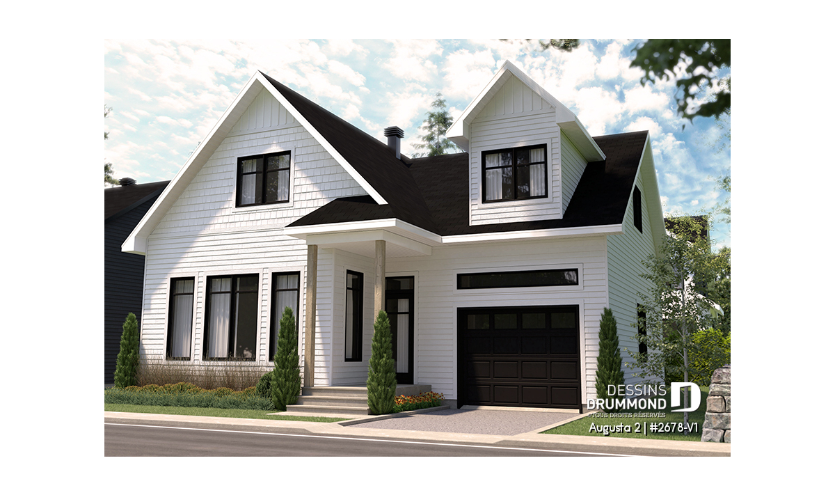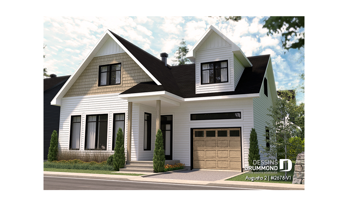 Vue avant - MODÈLE DE BASE - Modèle de maison champêtre traditionnel, suite des parents, 3 à 4 chambres, garage profond, sous-sol optionnel - Augusta 2