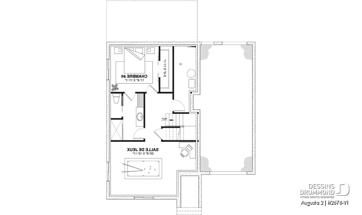 *Si vous souhaitez acheter le plan du sous-sol aménagé, tel que présenté sur la page de ce plan, veuillez sélectionner cette option dans le panier d'achat, dans la section "Sélectionner votre fondation". Si vous ne sélectionnez pas cette option, vous recevrez le sous-sol non fini, sans frais additionnel.