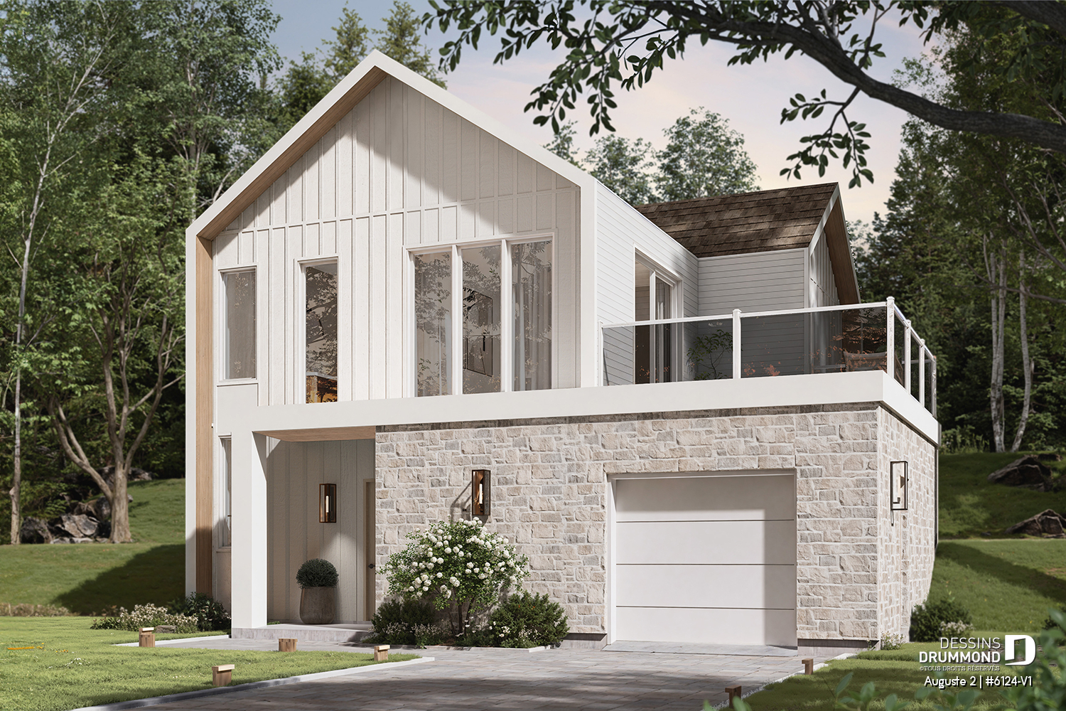 Son concept de planchers inversés est idéal pour les terrains en pente ou avec une vue panoramique. En plaçant les espaces de vie à l’étage, vous profitez pleinement de la lumière naturelle et du paysage, tout en conservant l’intimité des chambres à coucher au niveau inférieur.