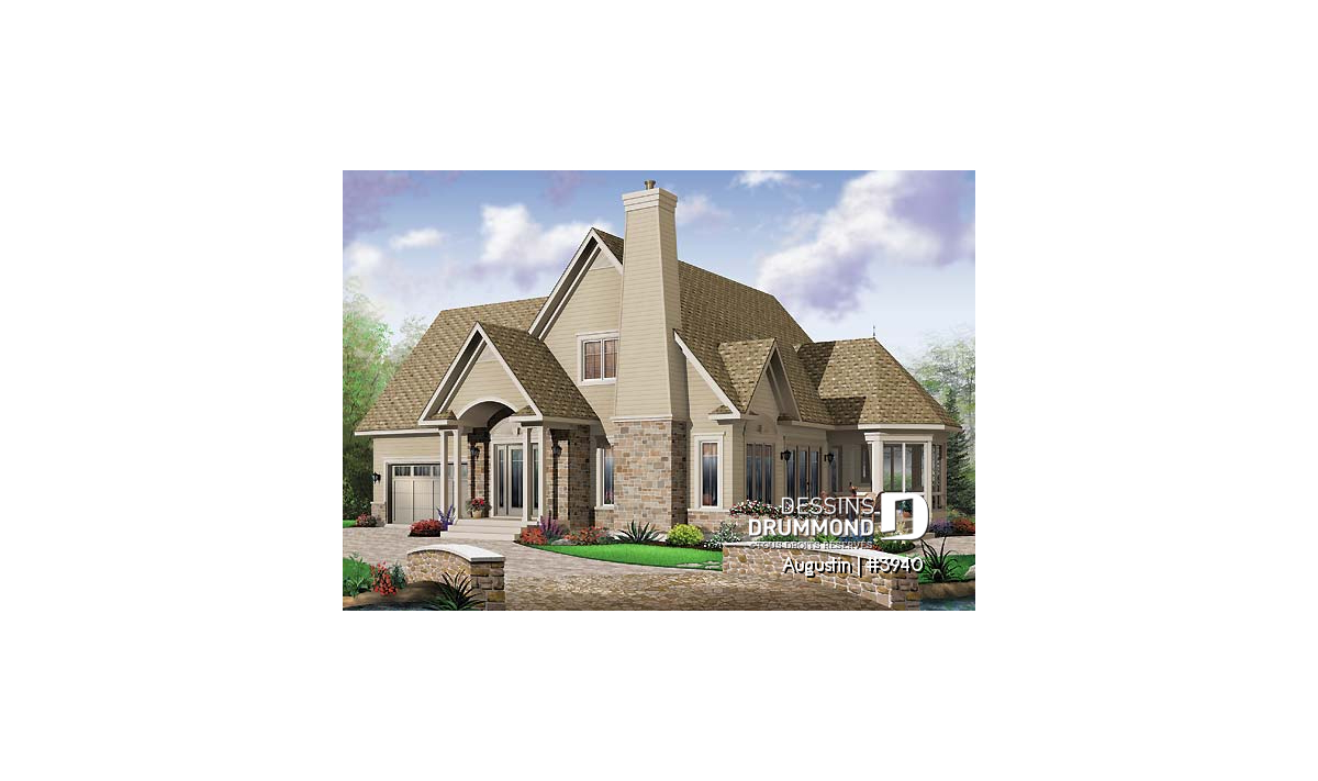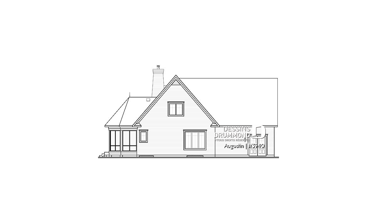 Bel abri-moustiquaire communiquant avec la cuisine. Plafond à 8'-6" au rez-de-chaussée. Fenestration abondante pour panorama latéral gauche. Chambre prévue au rez-de-chaussée. Deux autres fort belles chambres à l'étage et grand espace boni au-dessus du garage double.