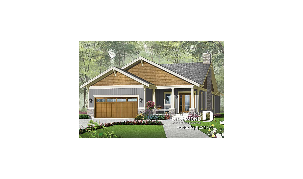 Plain-pied de style nordique proposant 3 chambres, 2 salles de bain, une salle de lavage et garage double.