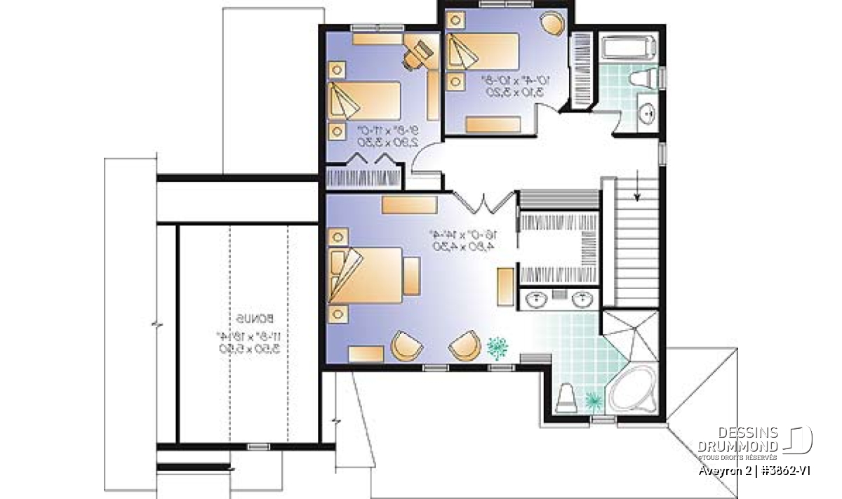 Étage - Plan de maison de campagne à étage, 3 chambres, 2.5 salles de bain, garage double - Aveyron 2