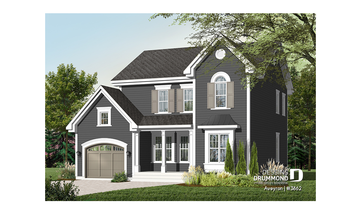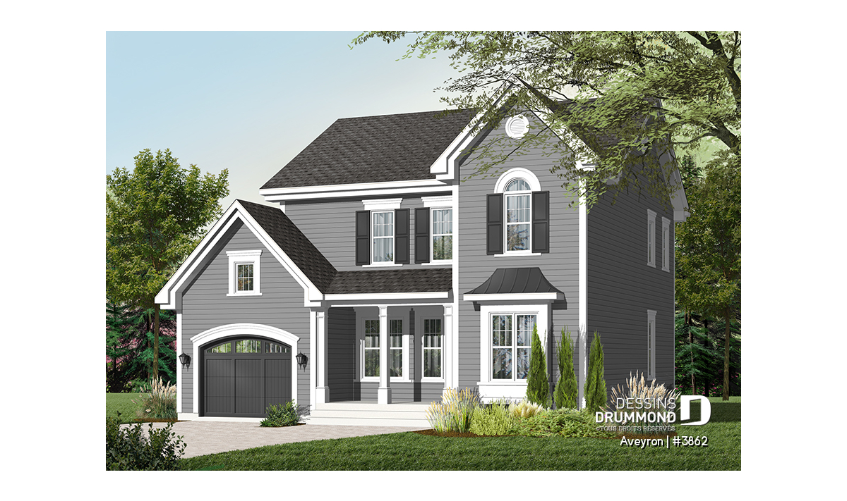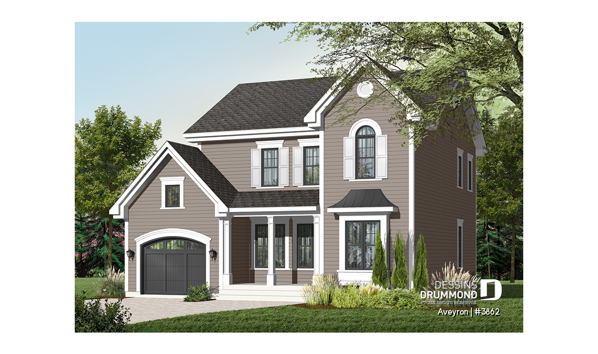 Beau plan de style traditionnel avec garage et 3 chambres.
