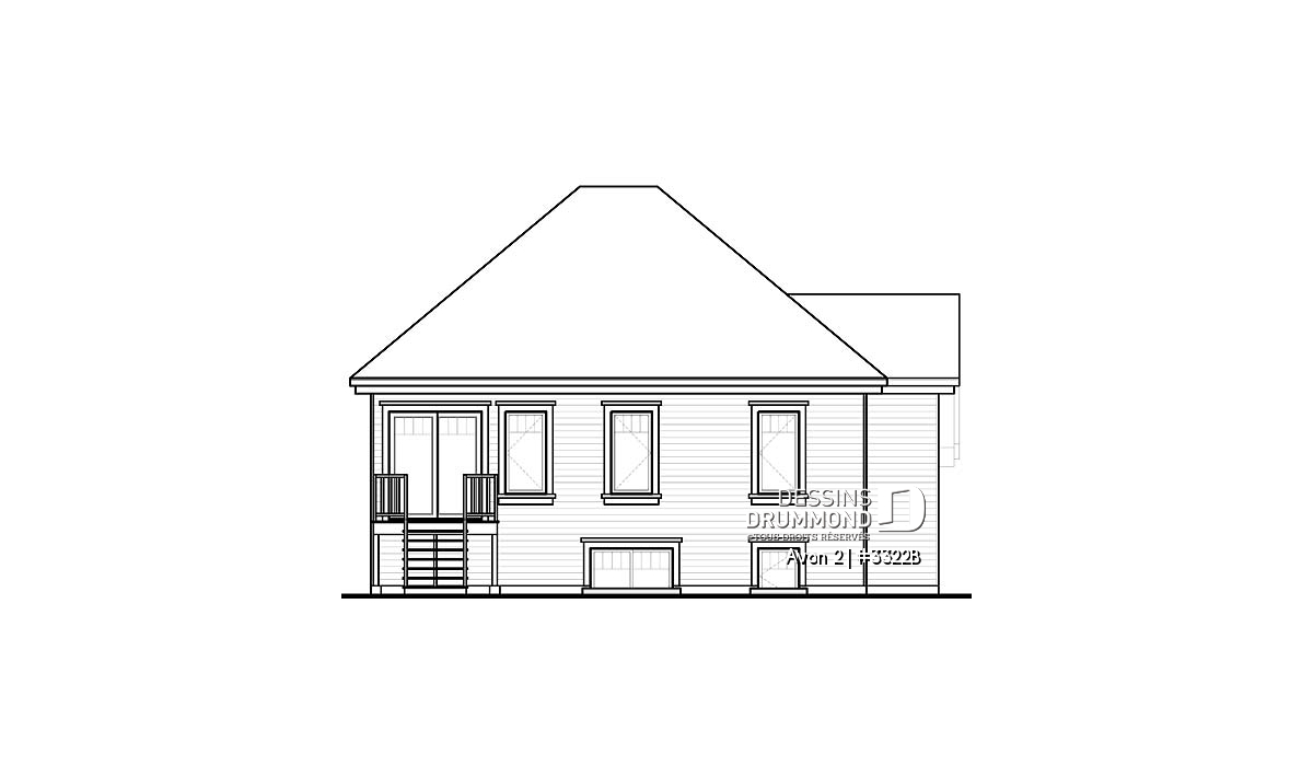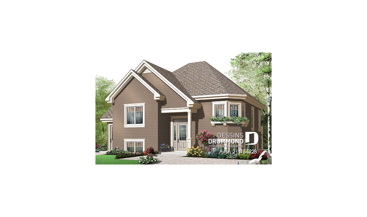 Dans la foulée de ces plans de maisons facilitant l’accès à la propriété, Dessins Drummond vous suggère ce modèle de trois chambres avec bachelor intégré et entrée à palier permettant l’obtention de fenêtres de bon format pour les pièces du sous-sol..