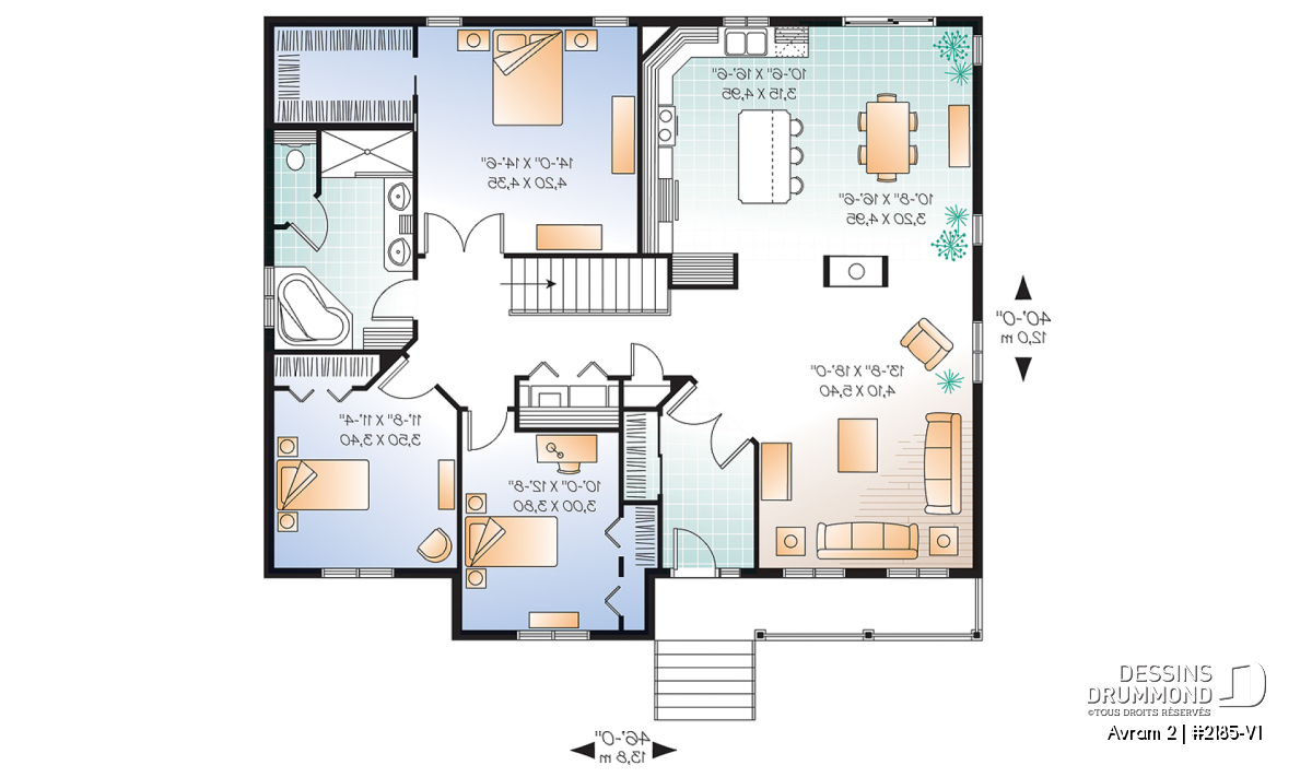 Déjà très populaire, le plan 2185, dont origine ce 2185-V1, a fait ses preuves avec des attributs que plusieurs acheteurs recherchent et ce, tant pour l’intérieur que pour l’extérieur. On prévoit qu’il en sera de même pour ce modèle version dont les 330 pi2 additionnels, bien répartis pour conserver les proportions de la maison, ne font qu’ajouter au confort de celle-ci. Entrons donc sans plus tarder.