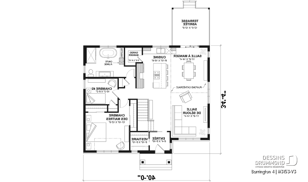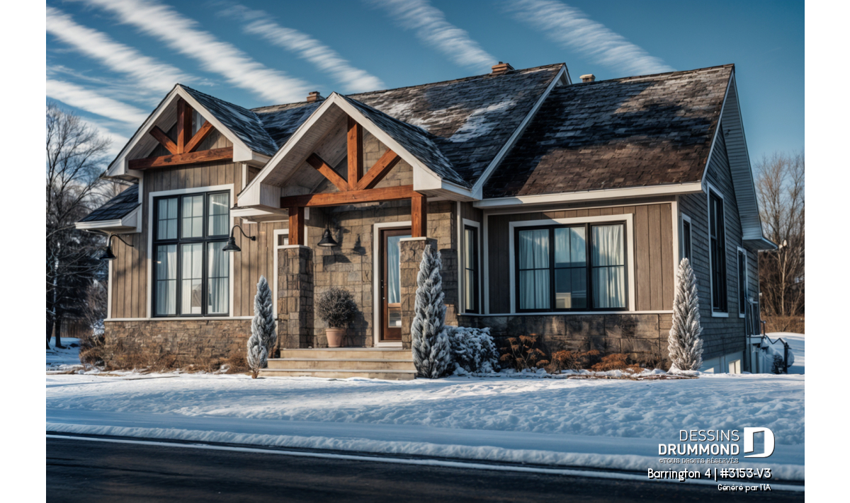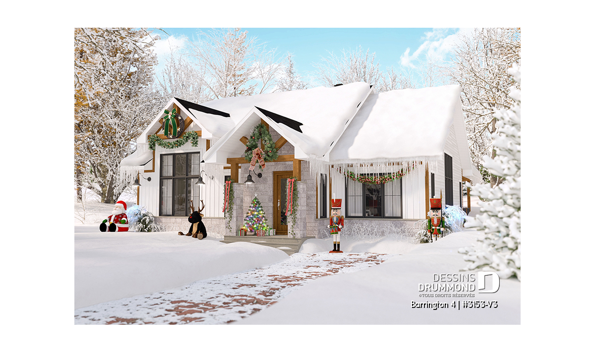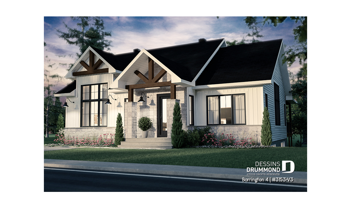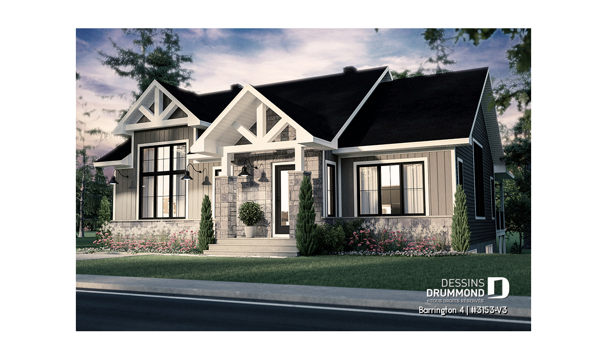 Ce modèle est offert en plusieurs variantes : consultez les plans #3153 et #3153-V1 si vous recherchez une version avec garage ou un format plus compact.