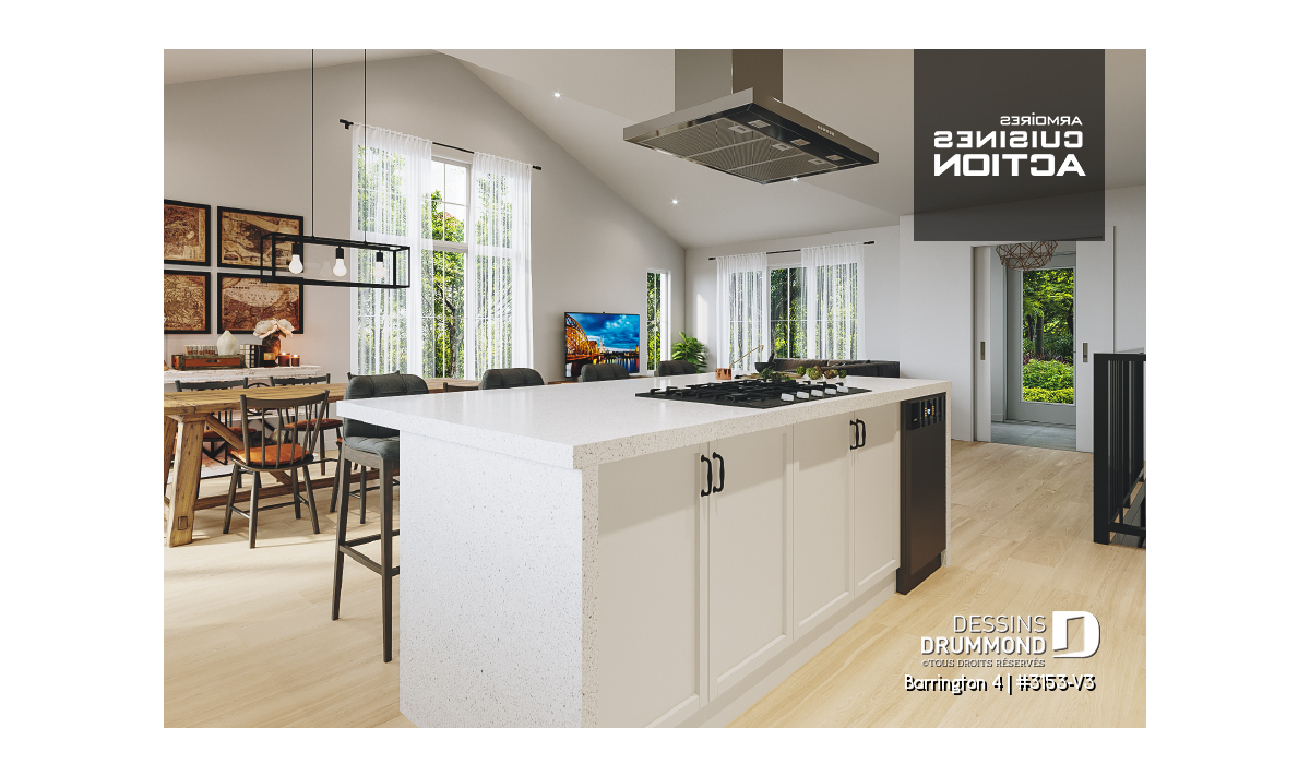 Le plan BARRINGTON 4 (plan #3153-V3) vous propose un espace de vie polyvalent et généreux avec 1 326 pi² aménagés au rez-de-chaussée, et la possibilité d’aménager le sous-sol (optionnel $) pour un total impressionnant de 2 652 pi². Une solution idéale pour les familles en pleine croissance qui souhaitent espace, confort et flexibilité.