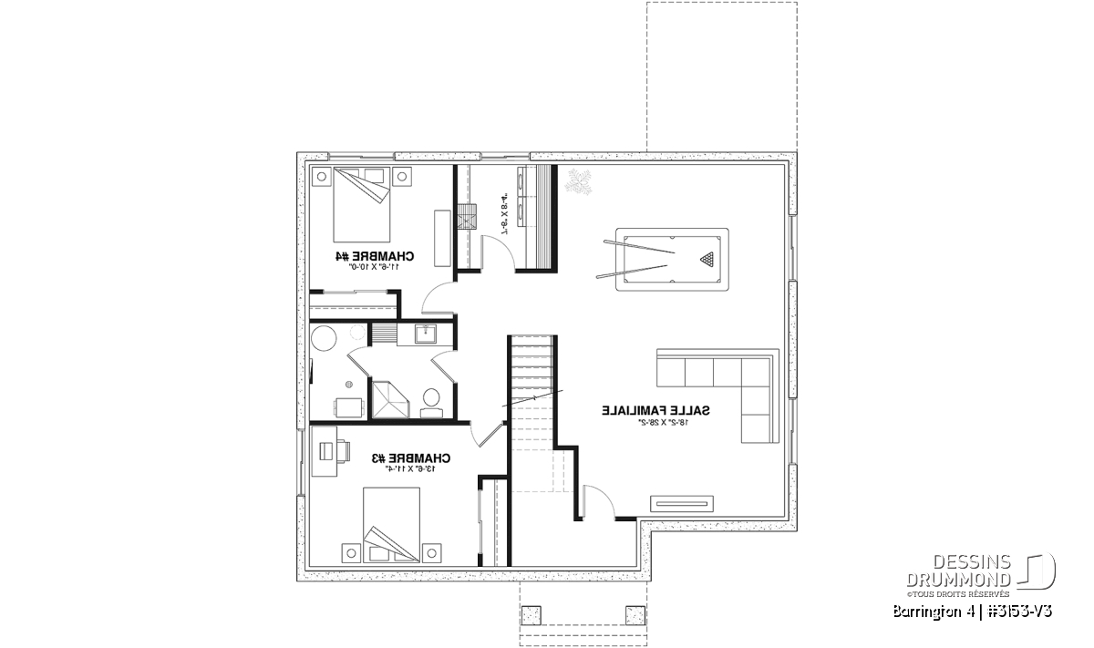 *Si vous souhaitez acheter le plan du sous-sol aménagé, veuillez sélectionner cette option dans le panier d'achat, dans la section "Sélectionner votre fondation". Si vous ne sélectionnez pas cette option, vous recevrez le sous-sol non fini, sans frais additionnel.