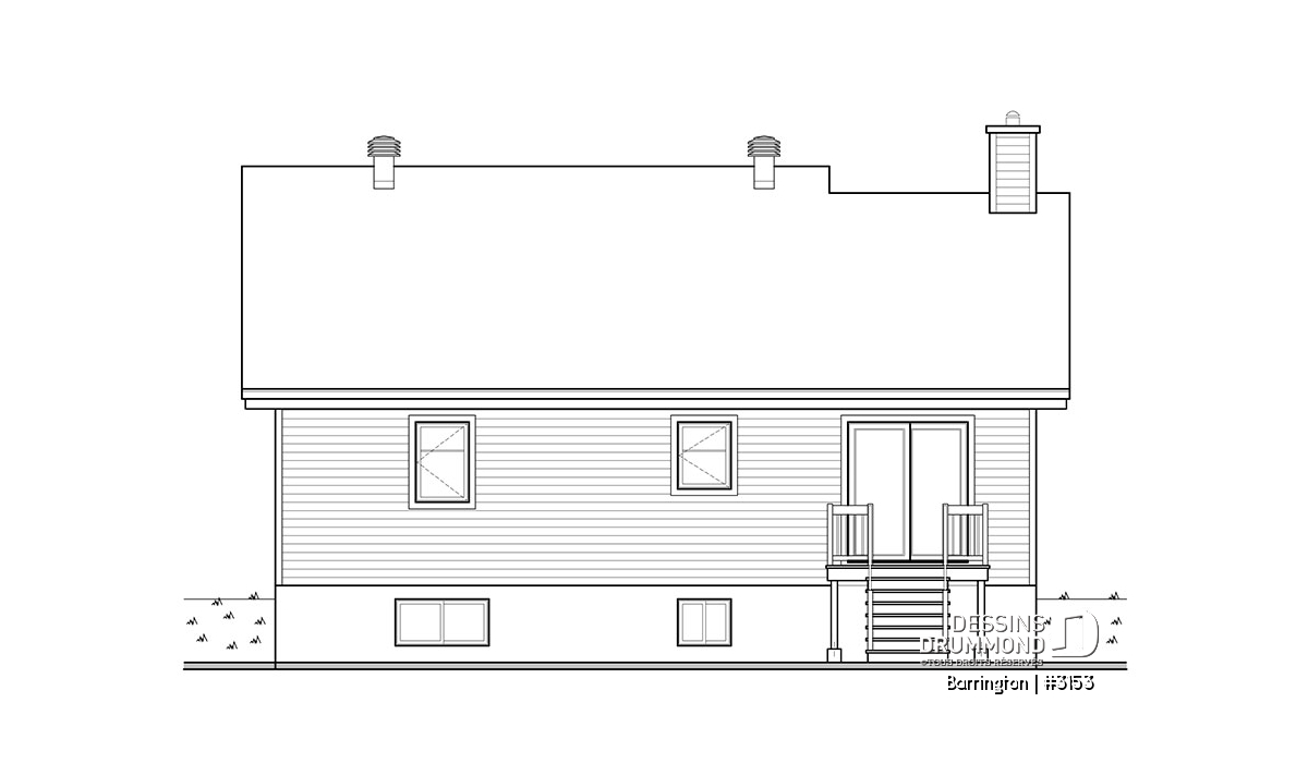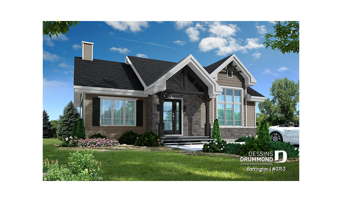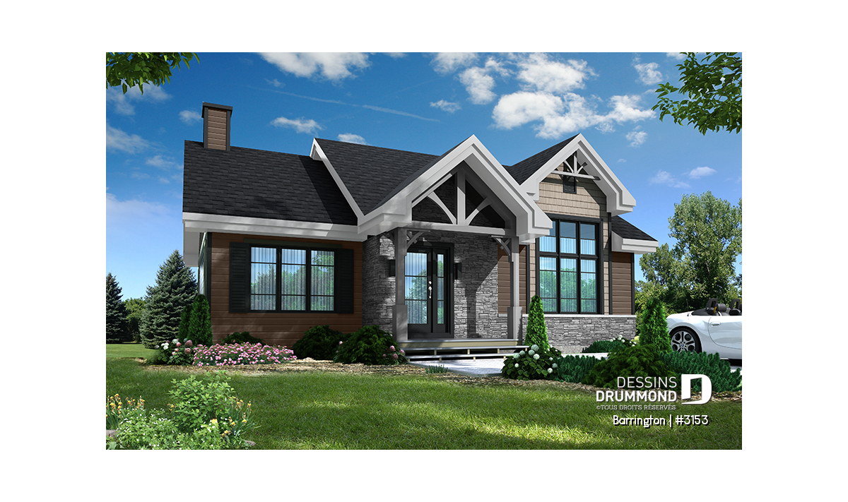 Vue avant - MODÈLE DE BASE - Plan maison 2 à 4 chambre, sous-sol fini optionnel ($), plafond cathédral, foyer, vestibule fermé, walk-in - Barrington