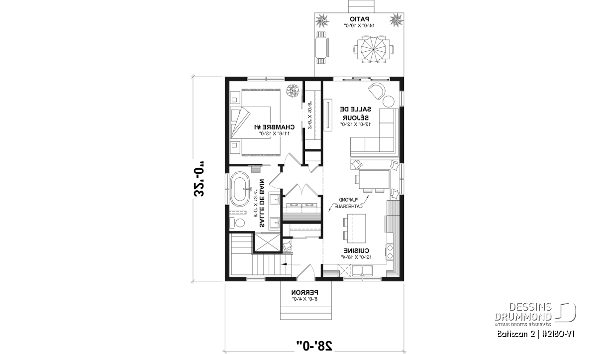 Le plan de maison Batiscan 2 (plan #2180-V1) propose un total de 896 pieds carrés aménagés sur chacune des étages (rez-de-chaussée et sous-sol si aménagé). Vous pouvez donc choisir d'aménager le sous-sol en 2 chambre, salle de douche, salle familiale, rangement et bureau, ou simplement prendre l'option dalle flottante ou autre, si vous ne souhaitez pas de sous-sol.