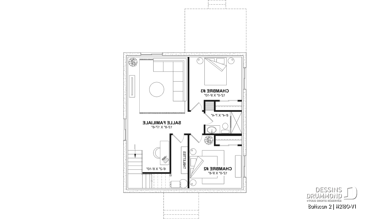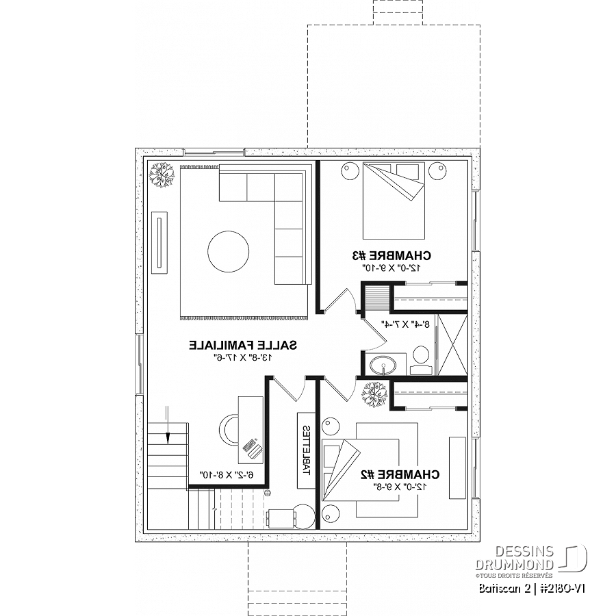 *Si vous souhaitez acheter le plan du sous-sol aménagé, veuillez sélectionner cette option dans le panier d'achat, dans la section "Sélectionner votre fondation". Si vous ne sélectionnez pas cette option, vous recevrez le sous-sol non fini, sans frais additionnel.
