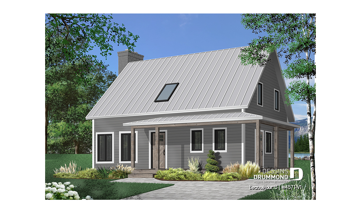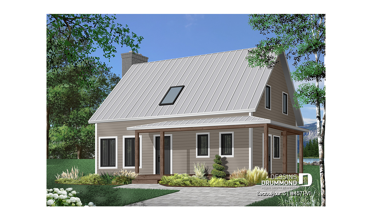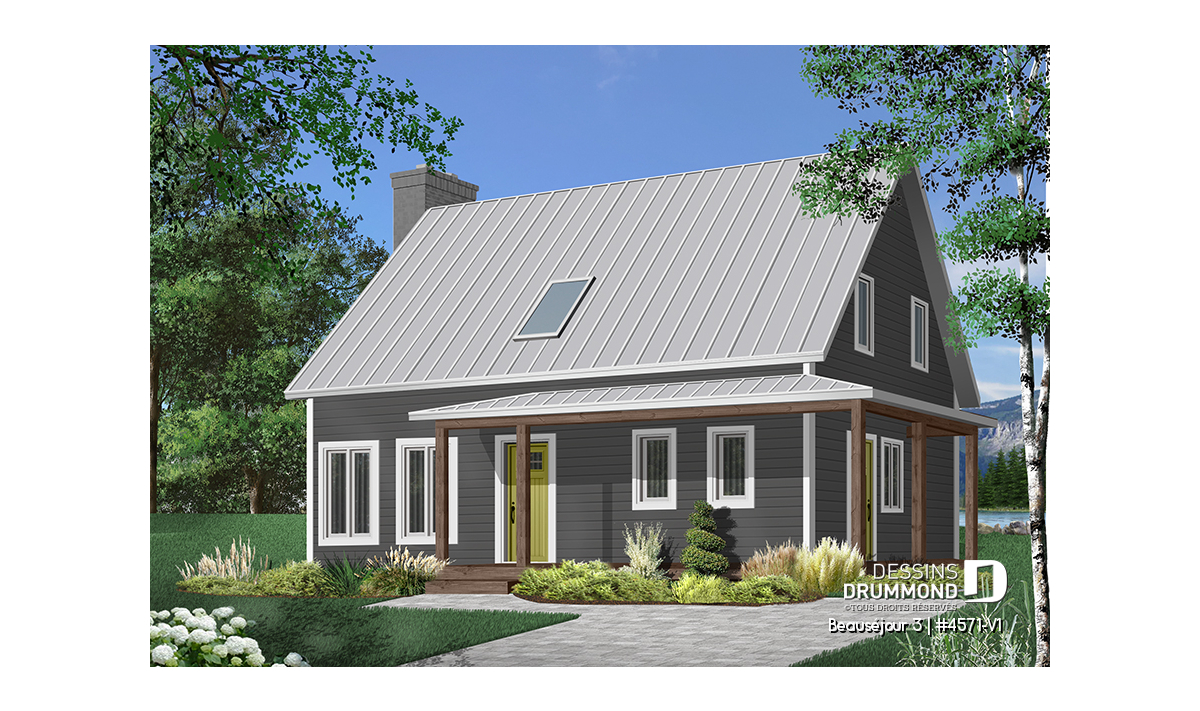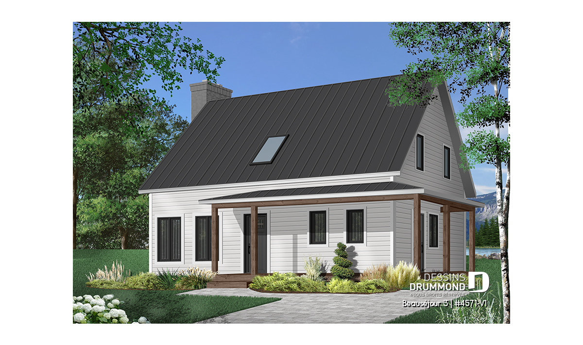 Impossible de ne pas tomber en amour avec ce nouveau plan de maison champêtre, nommé Beauséjour 3 ou plan no. 4571-V1. Elle offre une multitudes de balcons couverts, un foyer traditionnel de brique rouge, un toit de tôle foncé très tendance ainsi que des teintes recherchées cette année soit le gris foncé amalgamés à des tons de blanc et de bois. D’emblée je vous mentionne aussi, et non visible sur l’image avant, un très grand patio couvert à l’arrière, suffisamment grand pour recevoir une cuisine extérieure, une table et 6 chaises ainsi qu’un coin séjour lounge vous permettant d’apprécier votre cour arrière tout en étant confortablement bien installés à l’abri des intempéries.