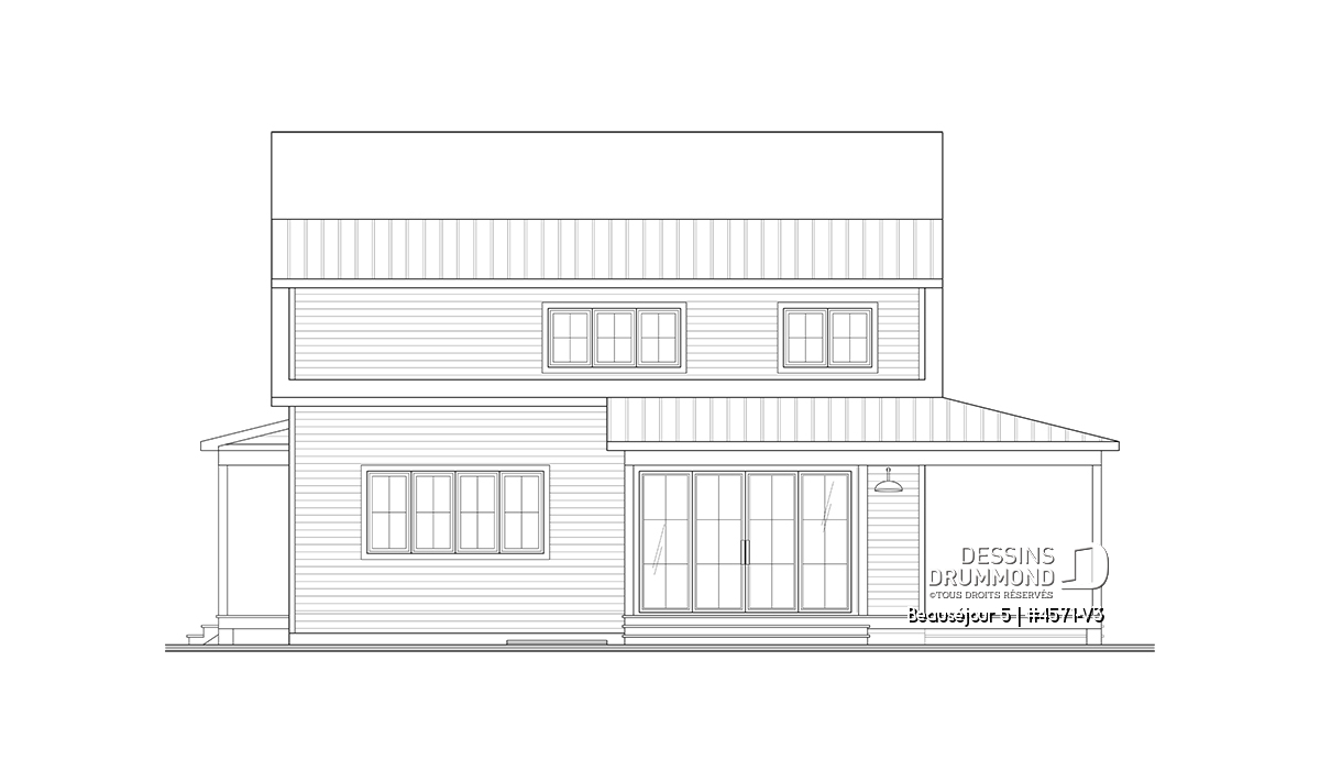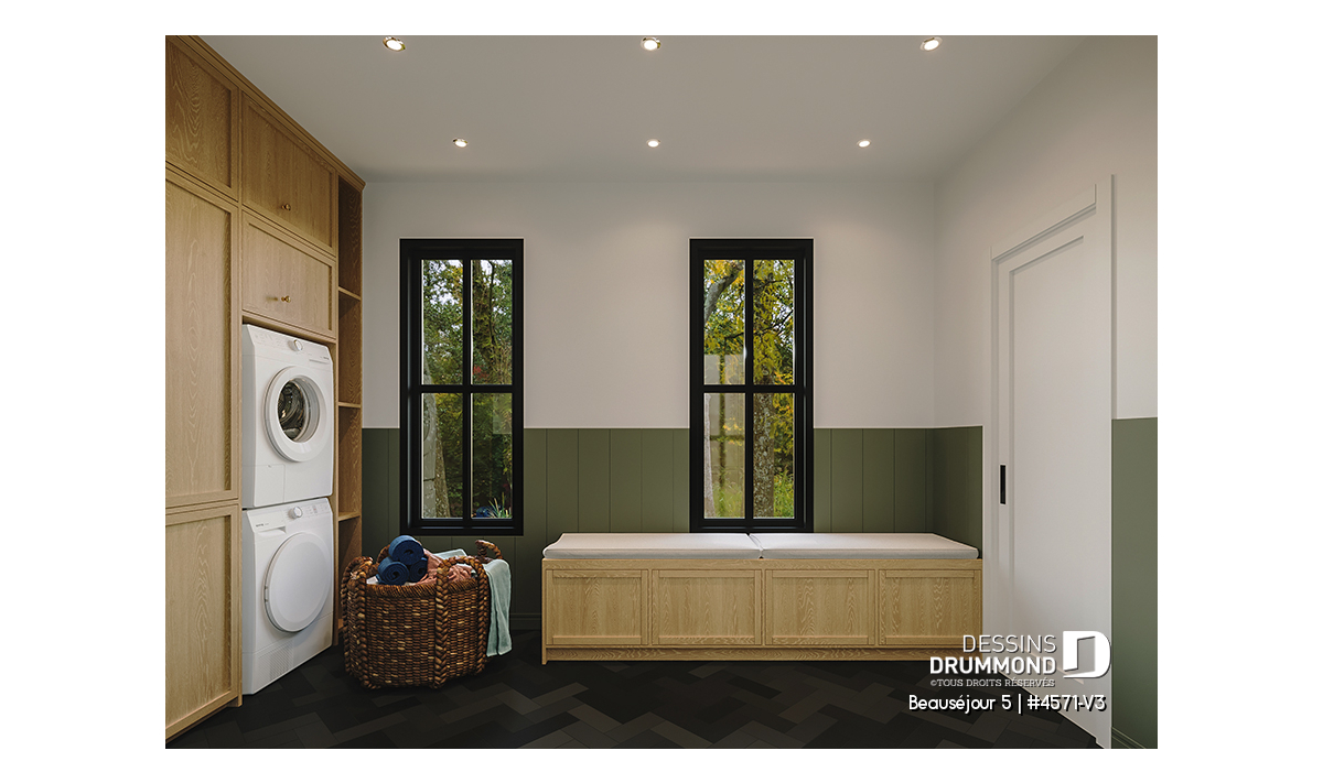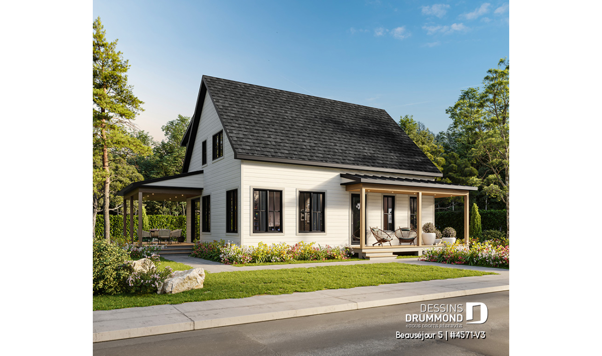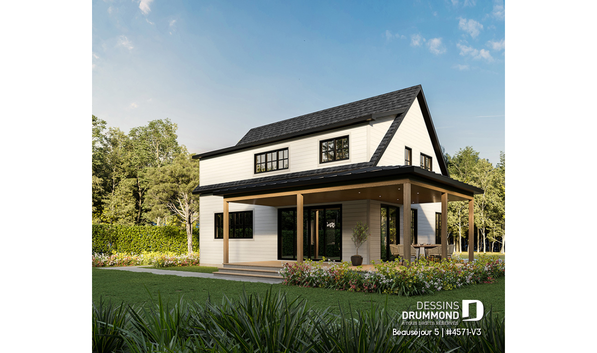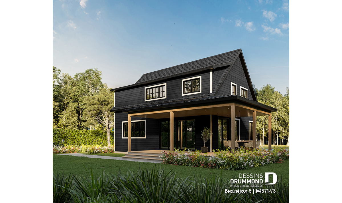 Le plan de maison BEAUSÉJOUR 5 (#4571-V3) propose 2826 pieds carrés aménagés sur 3 planchers, incluant un *sous-sol aménagé optionnel ($). Il est à noter que tous les planchers du rez-de-chaussée sont à 9' de hauteur et qu'il y a des plafonds en pente à la chambre des maîtres et également à la chambre #2.