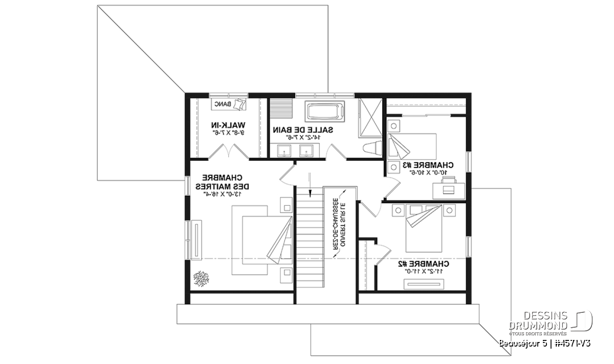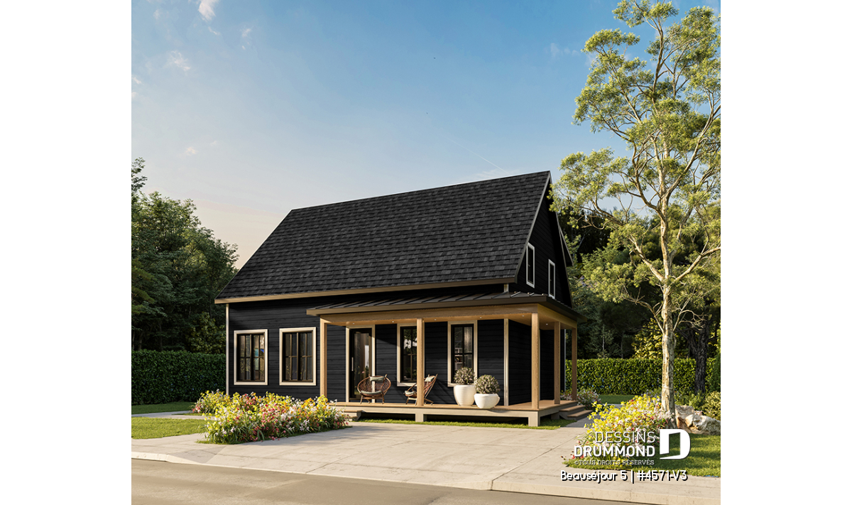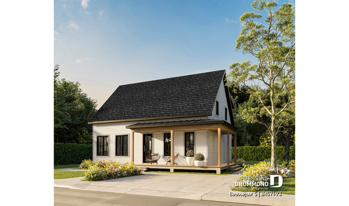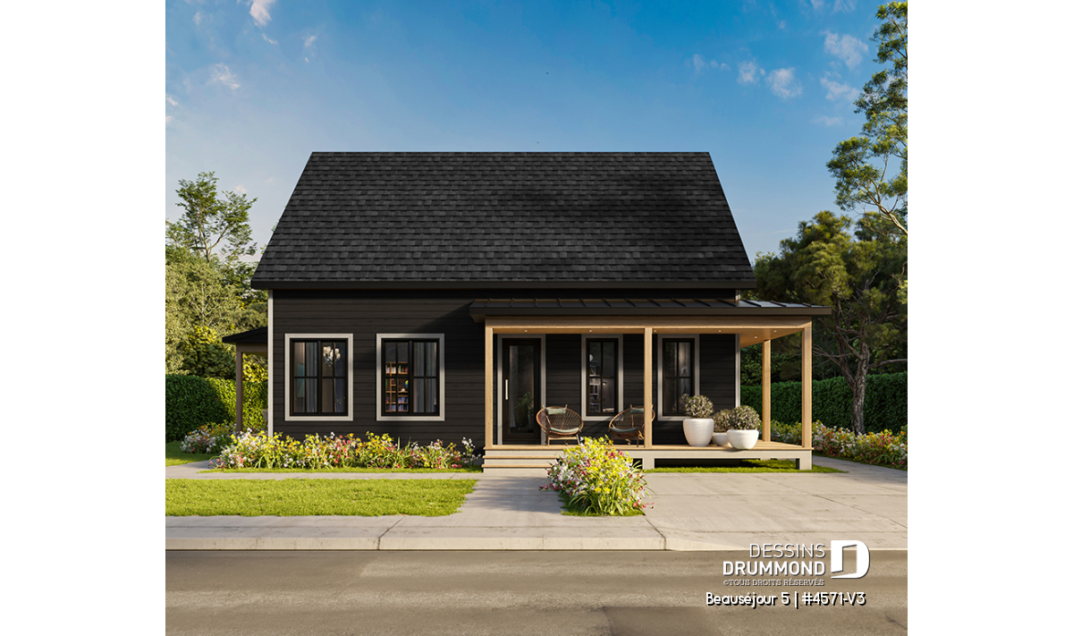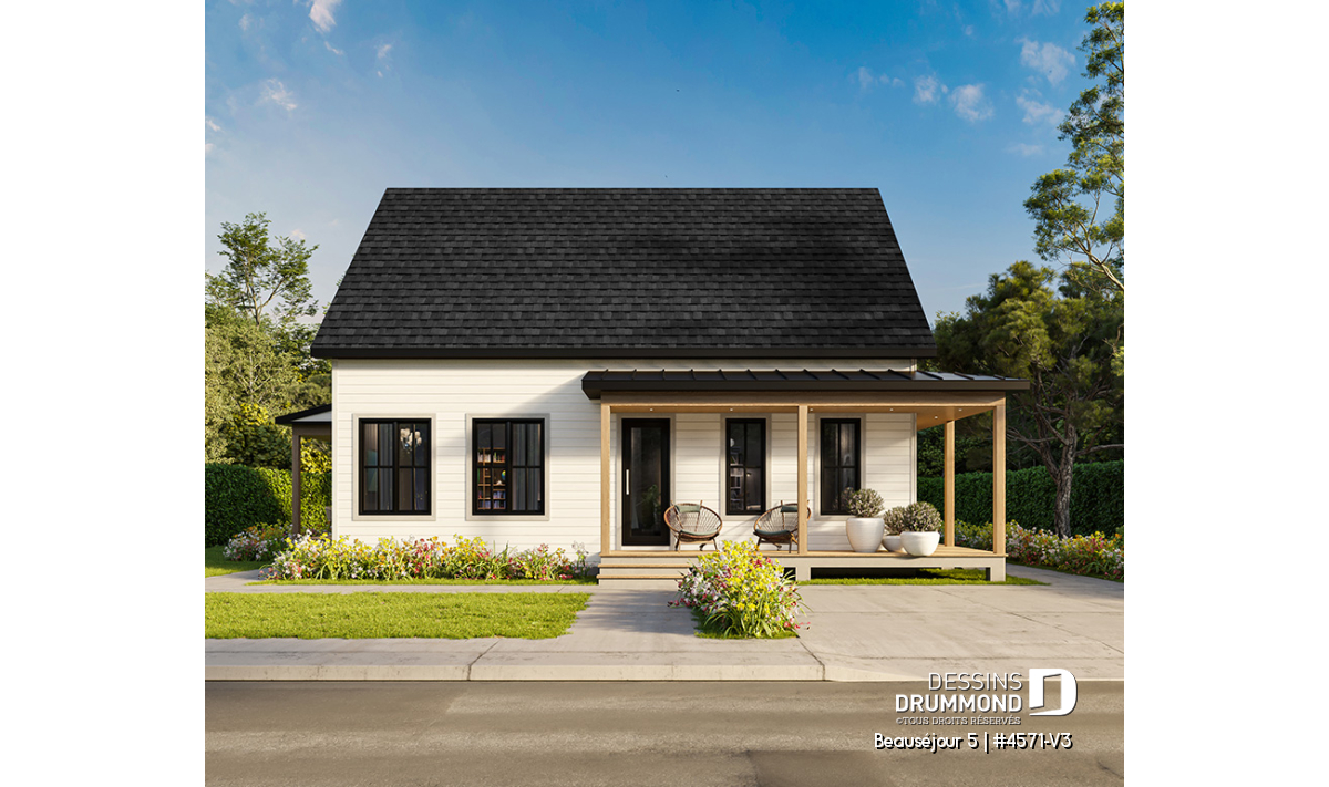 Le plan de maison BEAUSÉJOUR 5 (#4571-V3) propose 2826 pieds carrés aménagés sur 3 planchers, incluant un *sous-sol aménagé optionnel ($). Il est à noter que tous les planchers du rez-de-chaussée sont à 9' de hauteur et qu'il y a des plafonds en pente à la chambre des maîtres et également à la chambre #2.