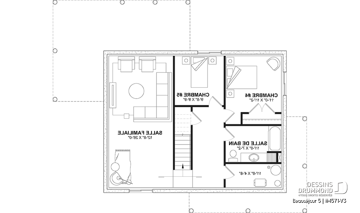 *Si vous souhaitez acheter le plan du sous-sol aménagé, tel que présenté sur la page de ce plan, veuillez sélectionner cette option dans le panier d'achat, dans la section "Sélectionner votre fondation". Si vous ne sélectionnez pas cette option, vous recevrez le sous-sol non fini, sans frais additionnel.