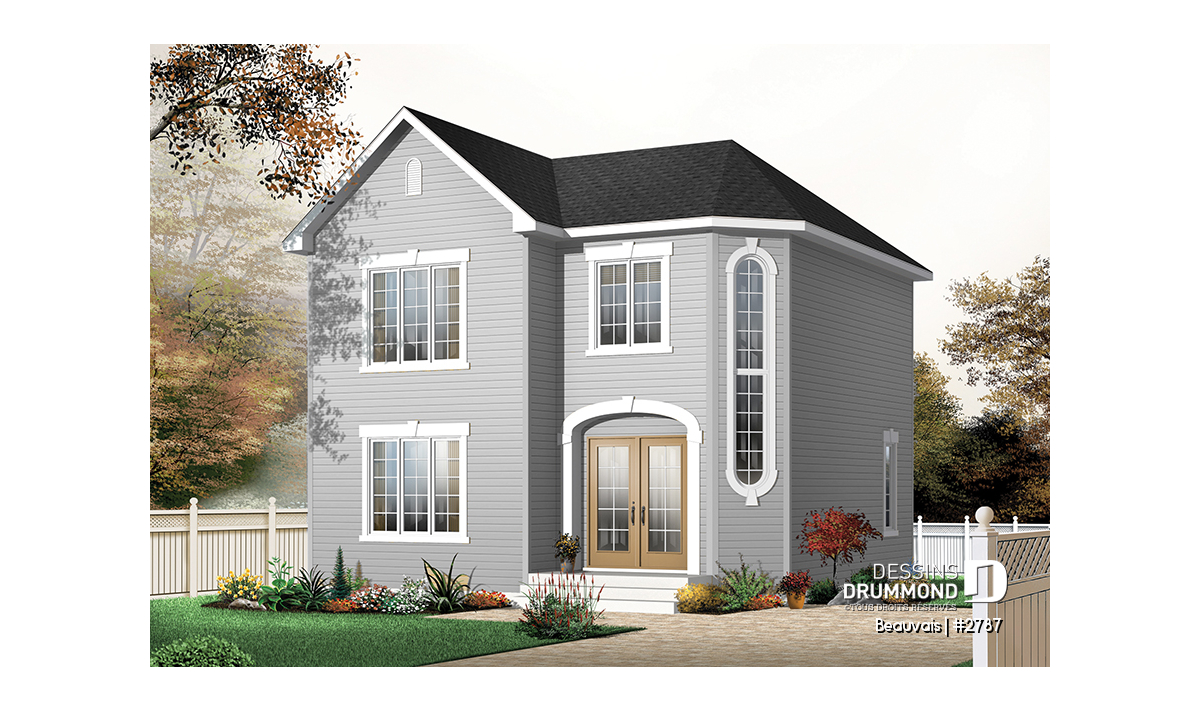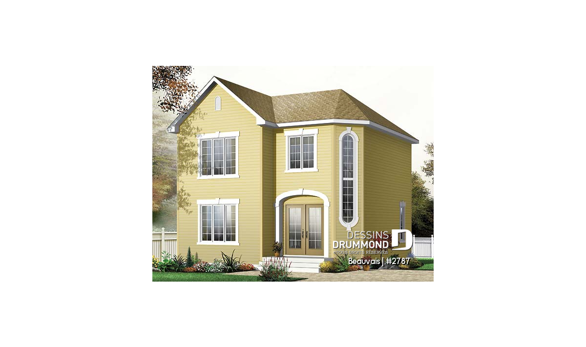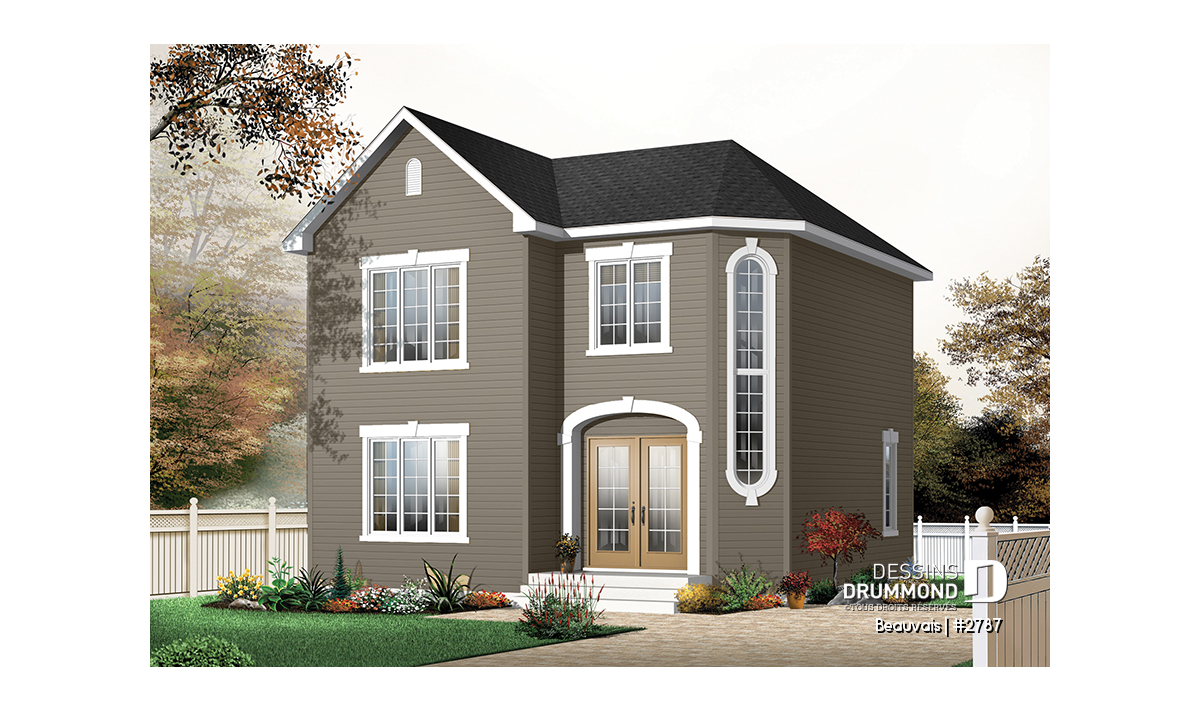 Version couleur no. 1 - Vue avant - Plan maison abordable, 3 chambres, salle de lavage au r-d-c, 1.5 salleS de bain - Beauvais