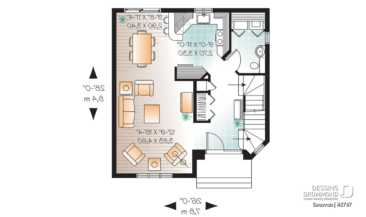Largeur 26'0" Profondeur 28'0"