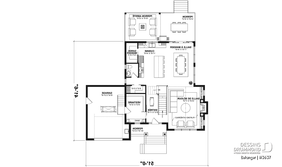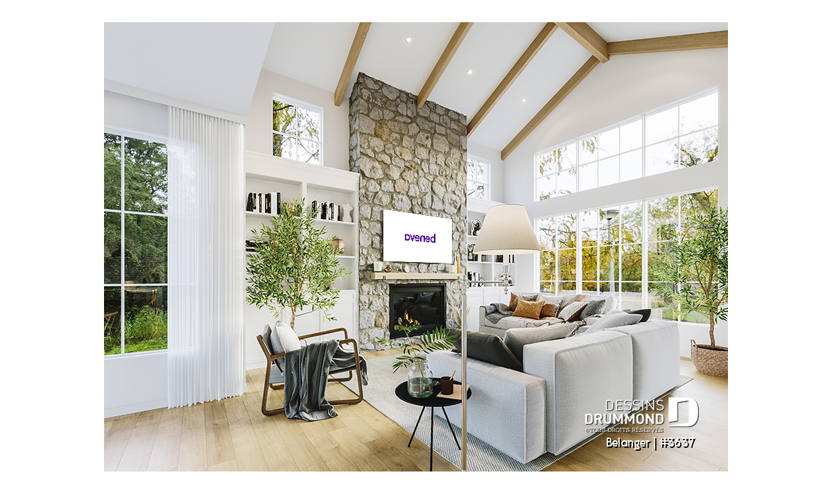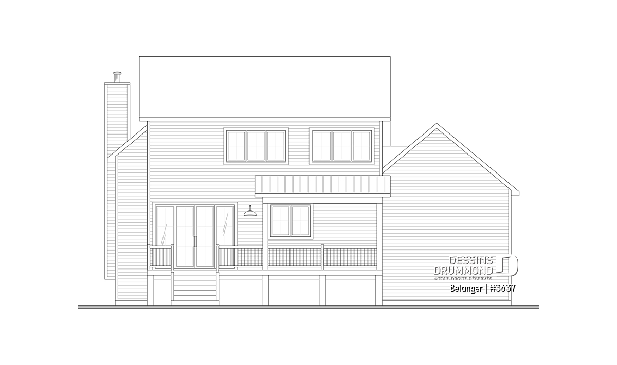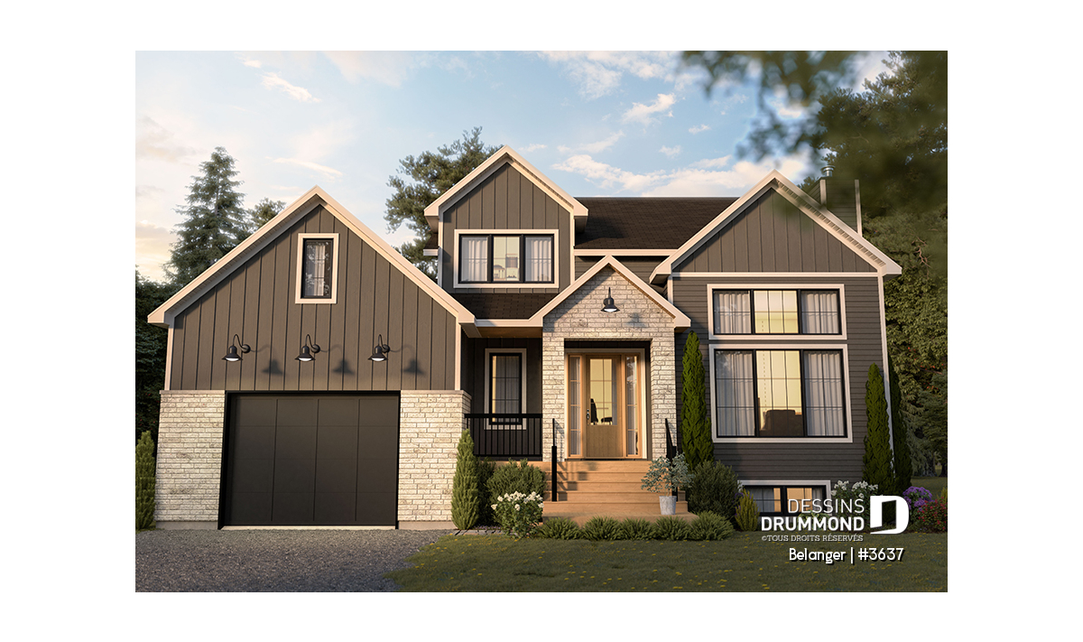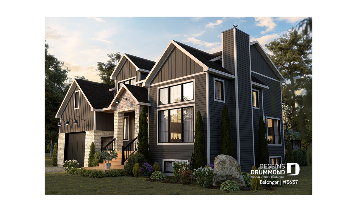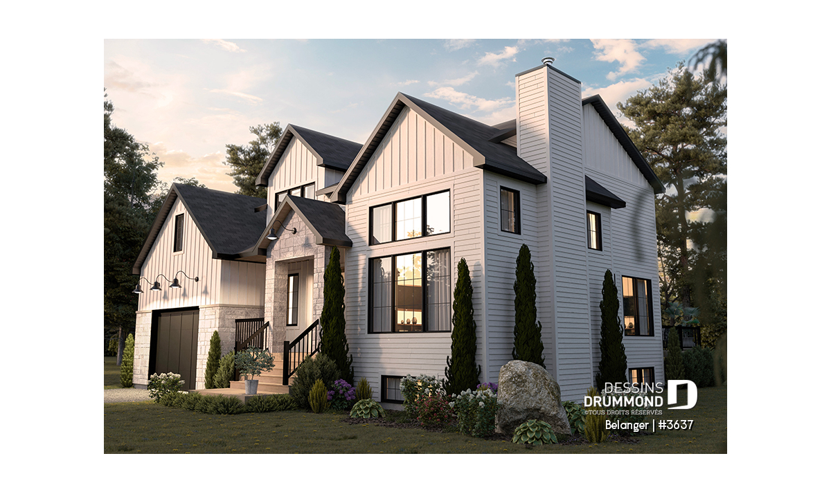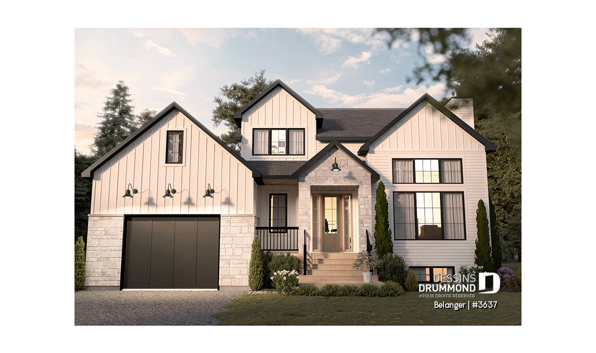 Le magnifique et spacieux plan de maison BELANGER (#3637) propose 3012 pi.ca., en plus d'un garage et d'une grande terrasse arrière partiellement abritée. À noter que les plafonds du rez-de-chaussée sont tous à 9' à l'exception du plafond de la salle de séjour qui lui est cathédrale, et à 17' de hauteur!