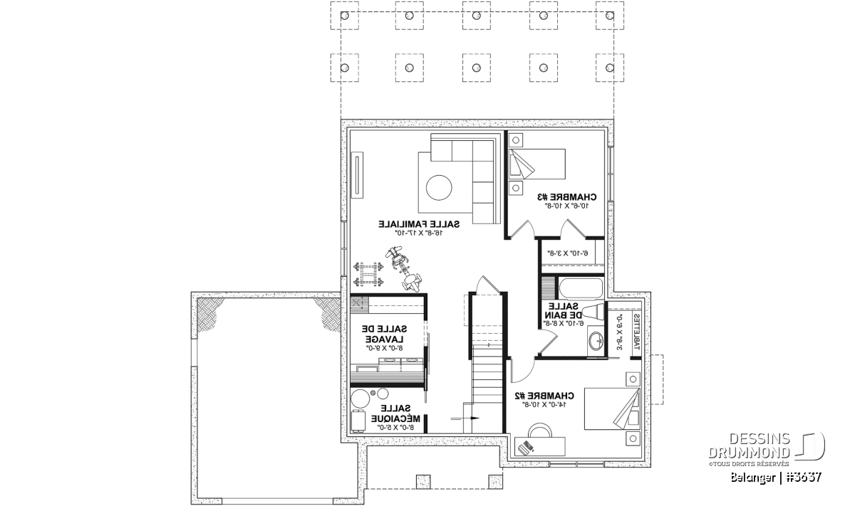 *Si vous souhaitez acheter le plan du sous-sol aménagé, tel que présenté sur la page de ce plan, veuillez sélectionner cette option dans le panier d'achat, dans la section "Sélectionner votre fondation". Si vous ne sélectionnez pas cette option, vous recevrez le sous-sol non fini, sans frais additionnel.
