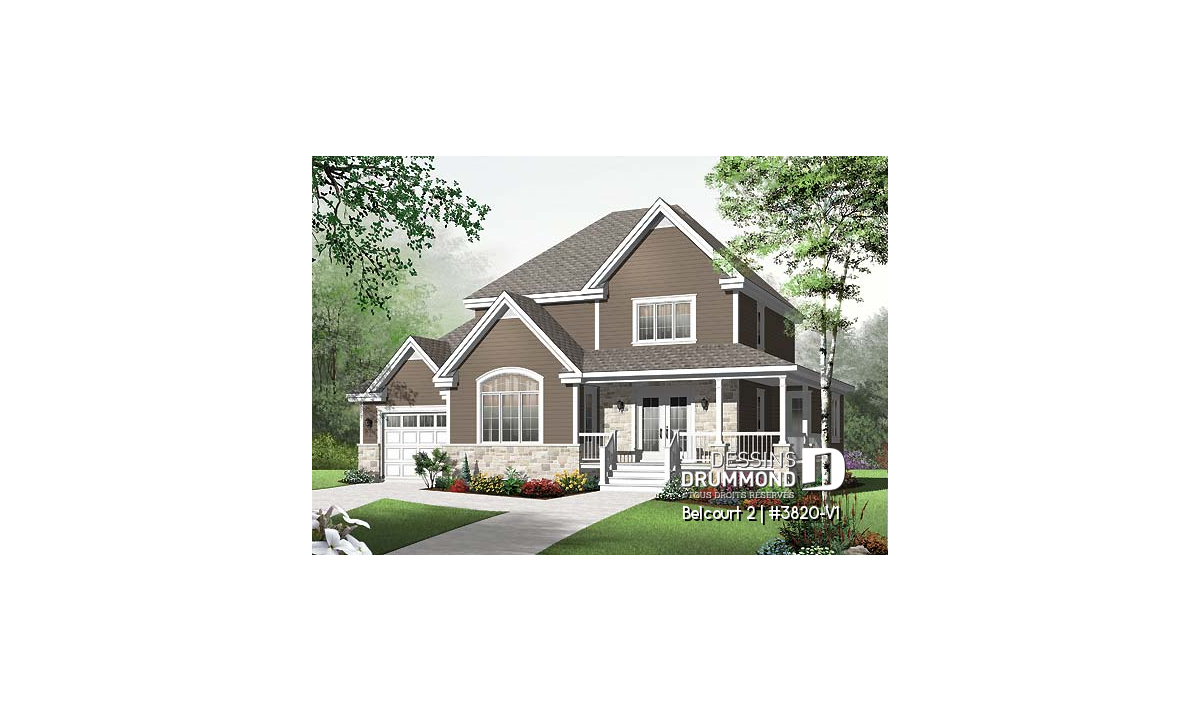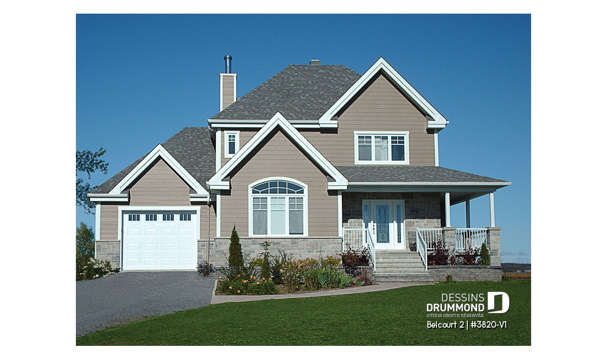 Déjà très populaire, le cottage 3820, que vous êtes en mesure d’apprécier en photos extérieures et intérieures et en différentes suggestions couleur, le deviendra encore possiblement davantage avec ce modèle 3820-V1 pour lequel un agrandissement de la maison et un agrandissement significatif du garage se veulent un ajout au confort de celle-ci et un véritable atout quand on s’attarde au format du nouveau garage.
