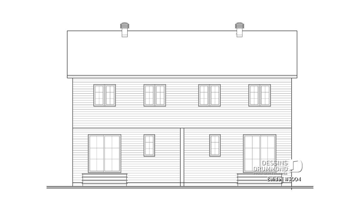 Vue avant - MODÈLE DE BASE - Plan de maison jumelé, aménagé sur 3 étages, 3 chambres, 2.5 sdb par unité - Belisle